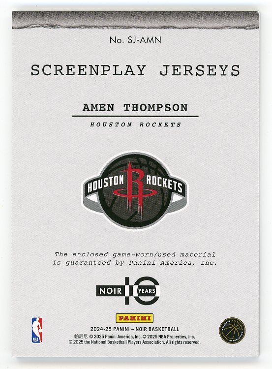 2024-25 Panini Noir Basketball Amen Thompson Screenplay Jerseys Jersey #'ed 86/99