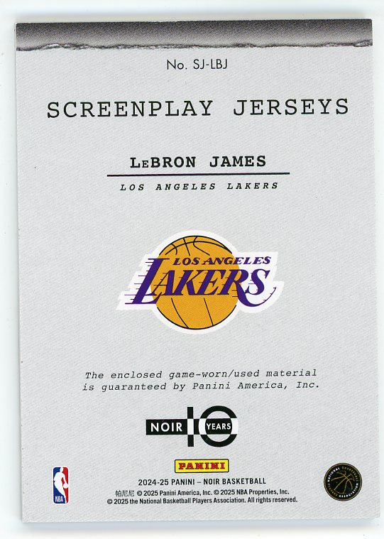 2024-25 Panini Noir Basketball Lebron James Screenplay Jerseys Holo Gold Patch #'ed 02/25