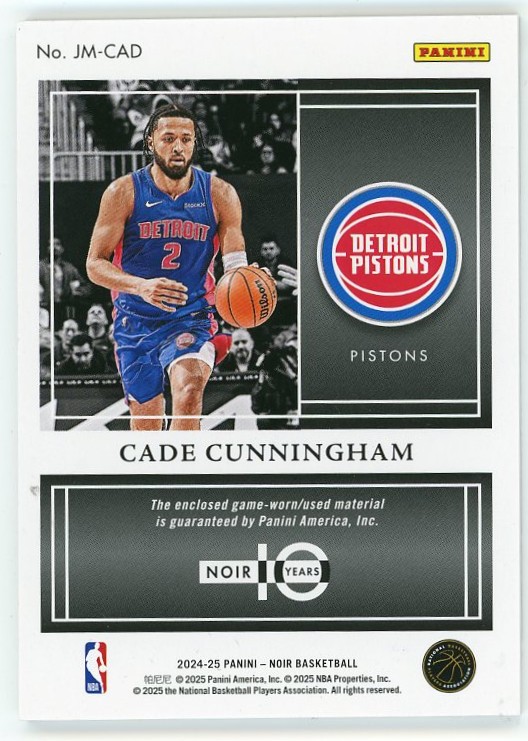 2024-25 Panini Noir Basketball Cade Cunningham Jumbo Materials Jersey #'ed 21/99