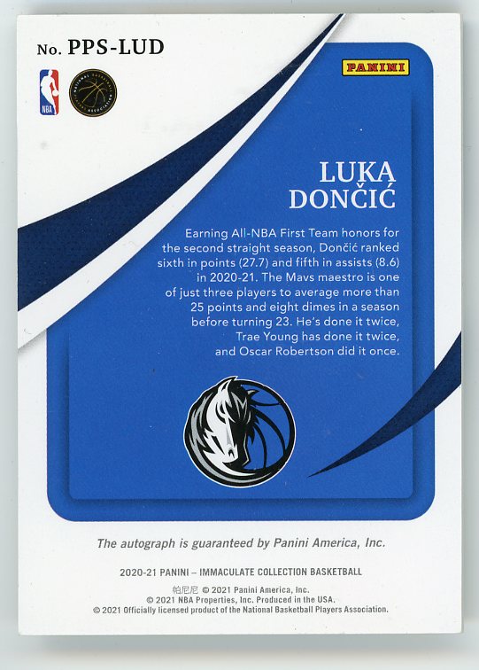 2020-21 Panini Immaculate Collection Basketball Luka Doncic Past & Present Signatures Auto #'ed 73/99