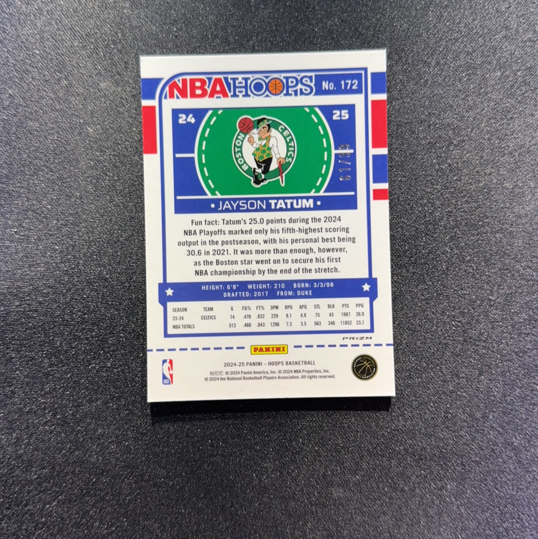 2024-25 Panini NBA Hoops Jayson Tatum 杰森 塔图姆 凯尔特人 61/99编 红折 Premium 欧文队友 卡品如图