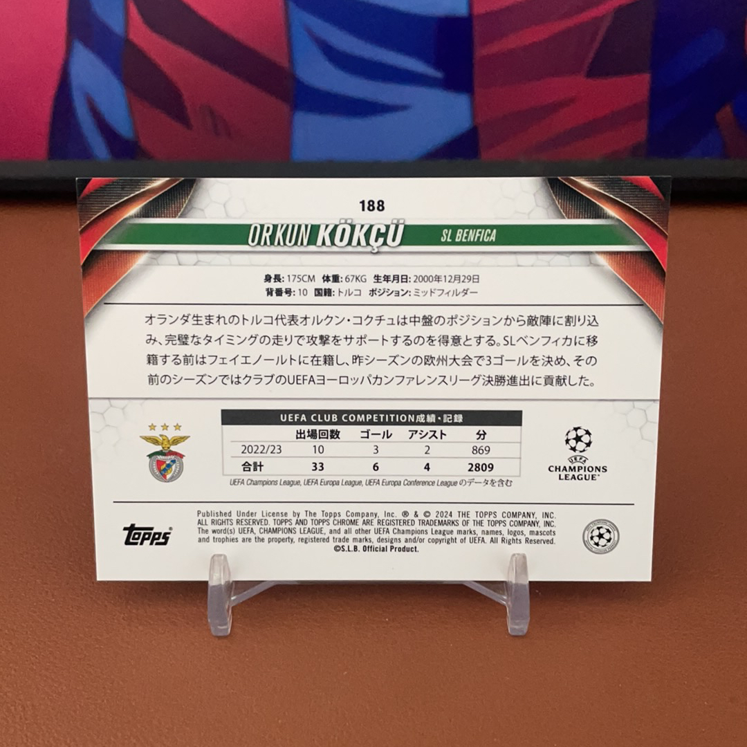 2024 Topps Chrome Orkun Kökcü 柯克曲 99/150 日版樱花 金迷宫 欧冠 土耳其 本菲卡 未来可期 收藏品 卡品如图(淼淼)通品 拍前看描述