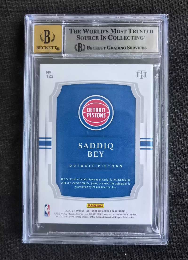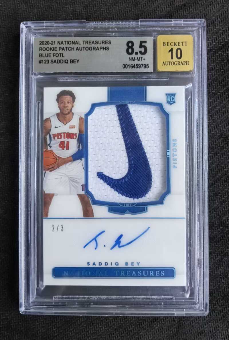 2020-21 Panini National Treasures Saddiq Bey RC 国宝 新秀 镜面 萨迪克贝 贝 rpa勾子切割 卡签 3编 bgs8.5/10 活塞 队友锡安 特雷墨菲