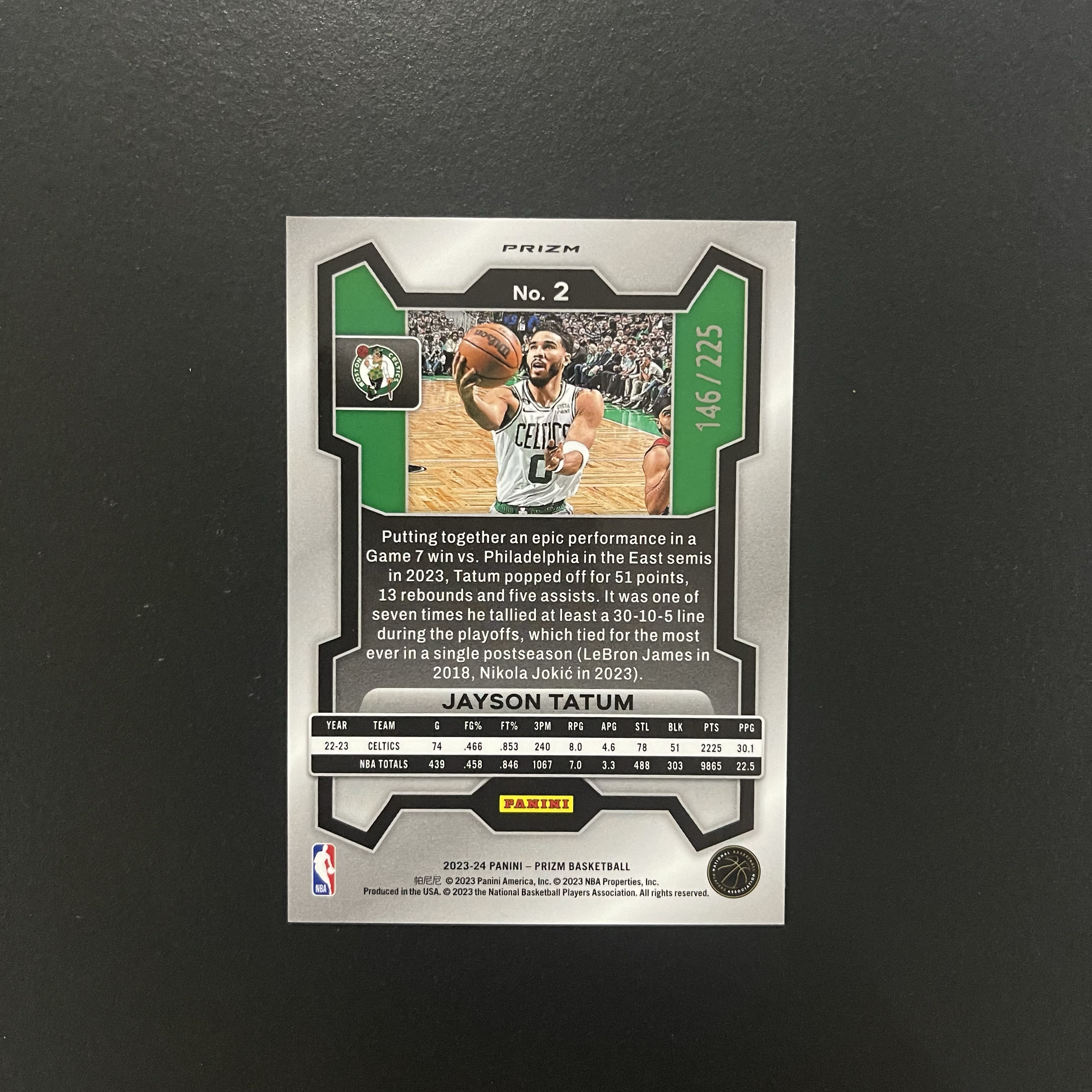 2023-24 Panini Prizm Jayson Tatum pz 杰森 塔图姆 凯尔特人 獭兔 146/225编 青碎冰 折射 大比例 专收凑套必备 卡品如图