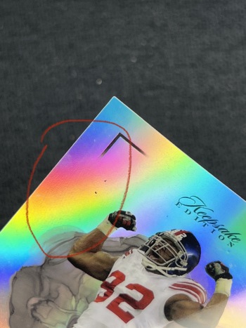 4.卡品如图请看仔细,照片很清楚!请看清楚再拍!折射系列以及马赛克折射系列经常会有一道折射横线 或点状痕 是印刷问题不属于卡品残次范畴,介意者请勿拍。厚卡有轻微白边属于正常现象!如无特殊说明均为通行品。IMM,NOIR, 金书,小真金,国宝,等厚卡系列卡品一般,边角经常有小问题介意勿拍!老卡有白边白角属于正常卡品,镜面卡签字经常有横条竖条印刷划痕属于正常通行品相!评级卡砖上的划痕和破损以及评级砖内的卡有卡品问题一律不属于品相问题