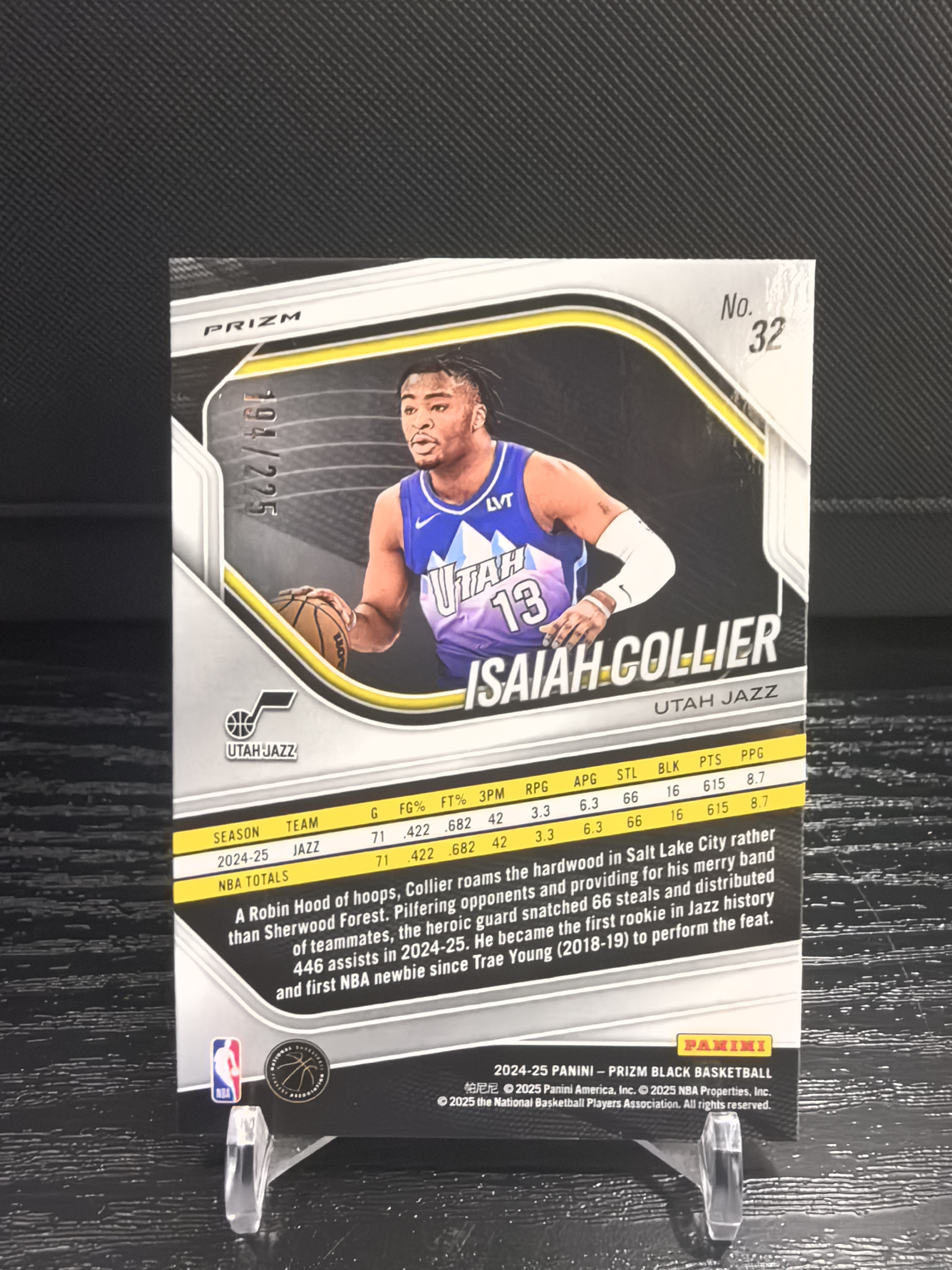2024-25 Panini Prizm Black Isaiah Collier RC PZ 新秀 独占 折射 球皮折 以赛亚 科利尔 科里尔 194/225编 爵士队 潜力巨大 收藏必备 卡品如图