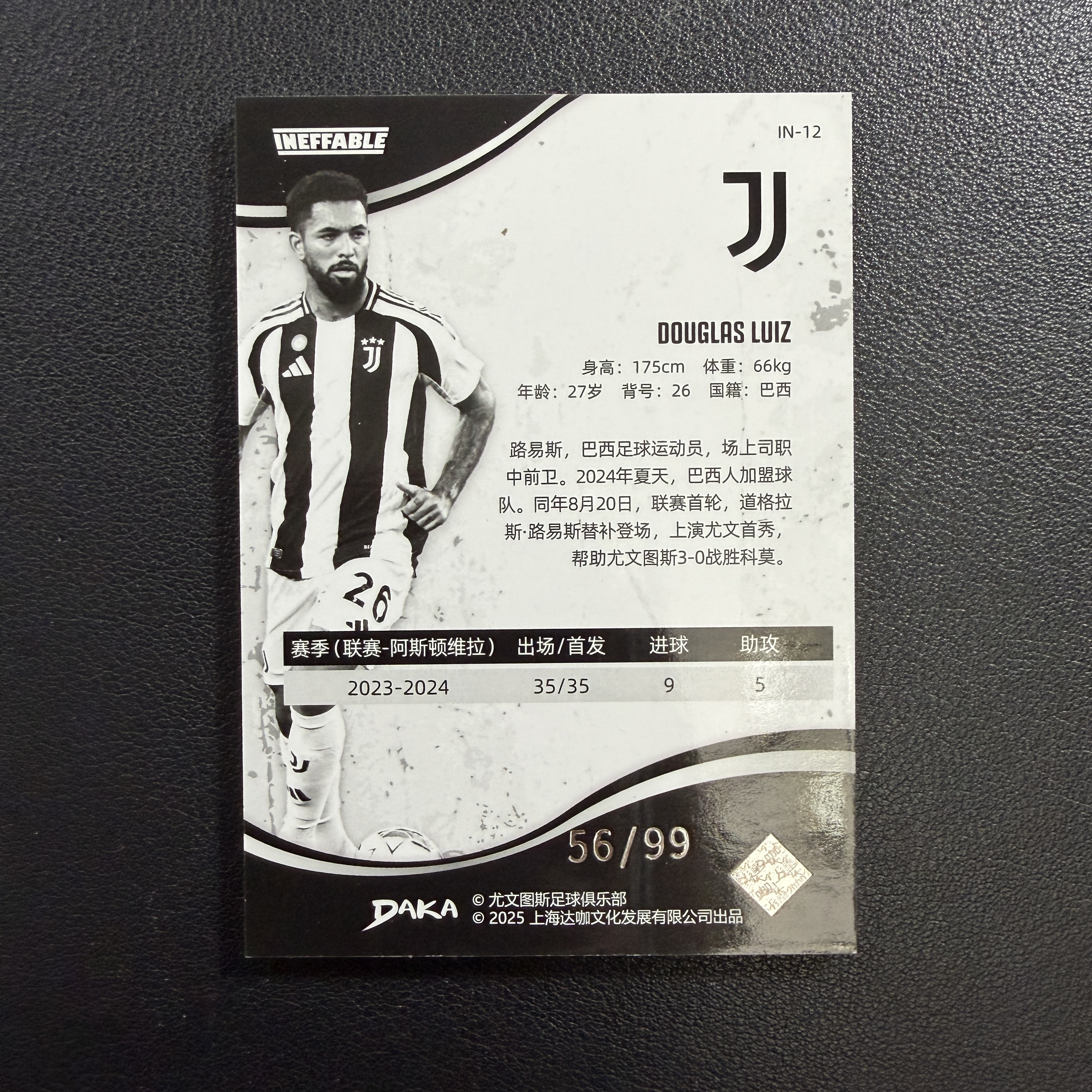 2025 DAKA Juventus Douglas Luiz 达咖尤文图斯队盒系列 巴西 尤文图斯 中场 道格拉斯 路易斯 56/99编 厚卡 收藏必备 卡品如图 许哥