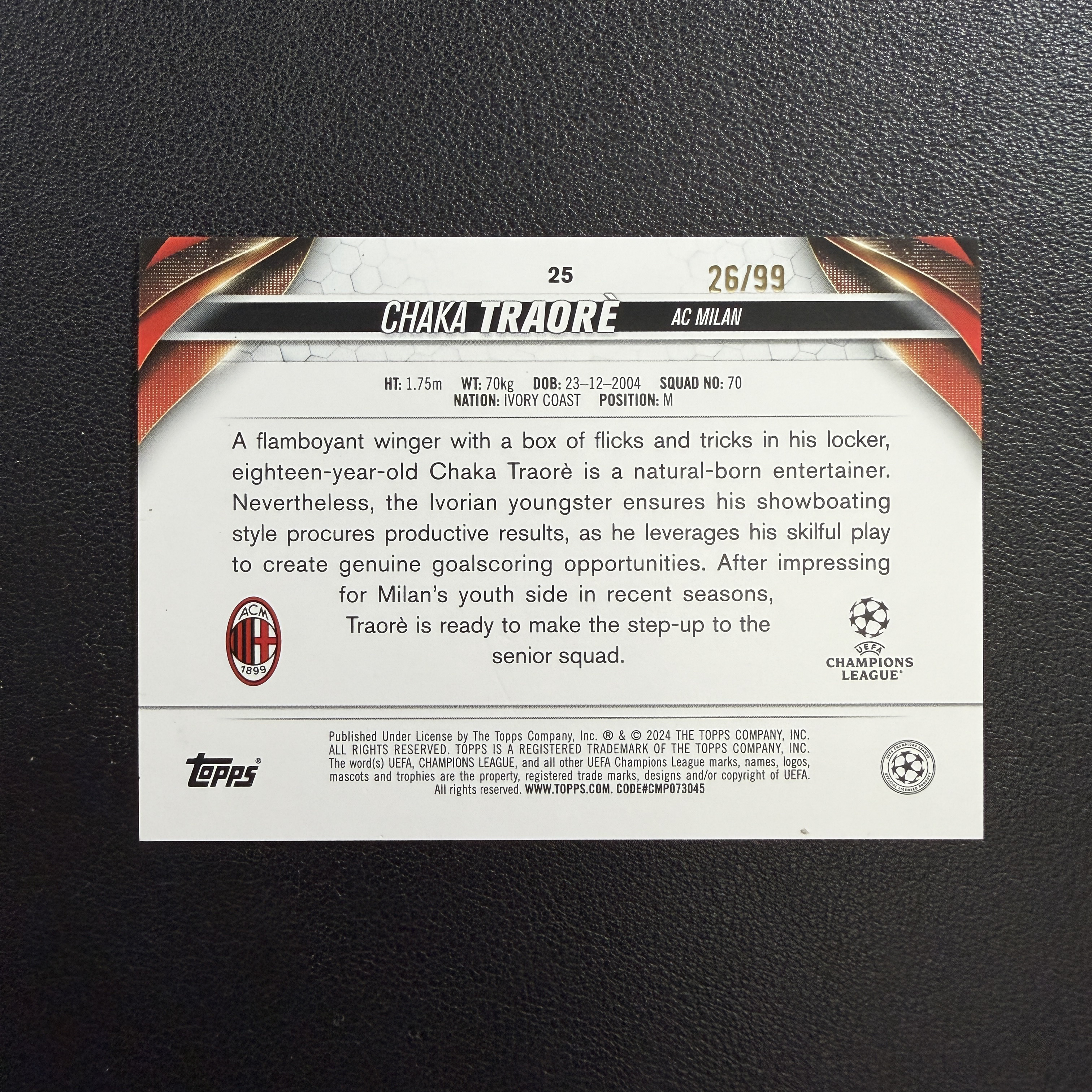 2024 Topps UCC 龙年碧玉 CHAKA TRAORE 查卡 特拉奥雷 RC 新秀 特劳雷 99编 意甲 AC米兰 A米 科特迪瓦 卡品如图 潇雪