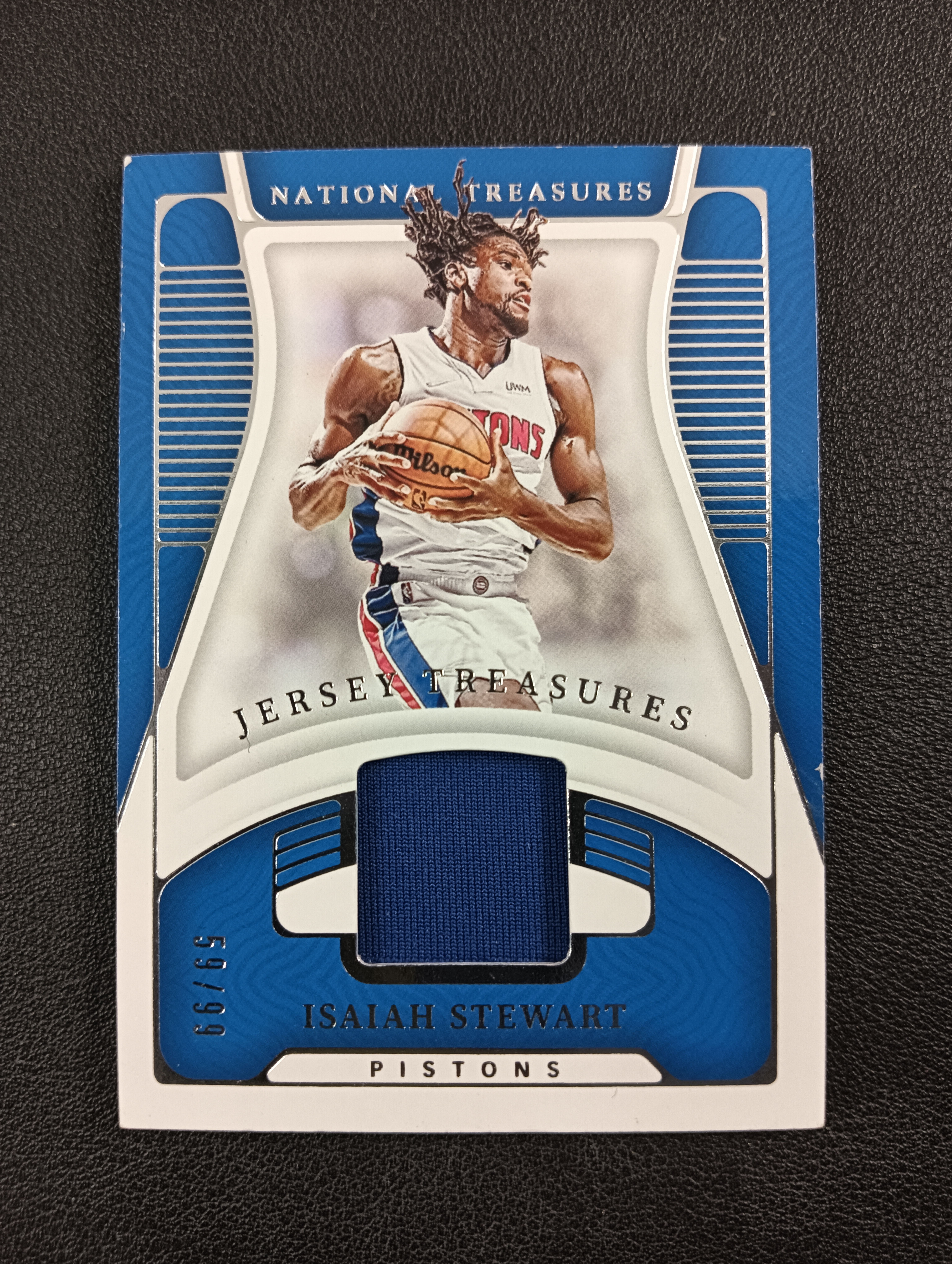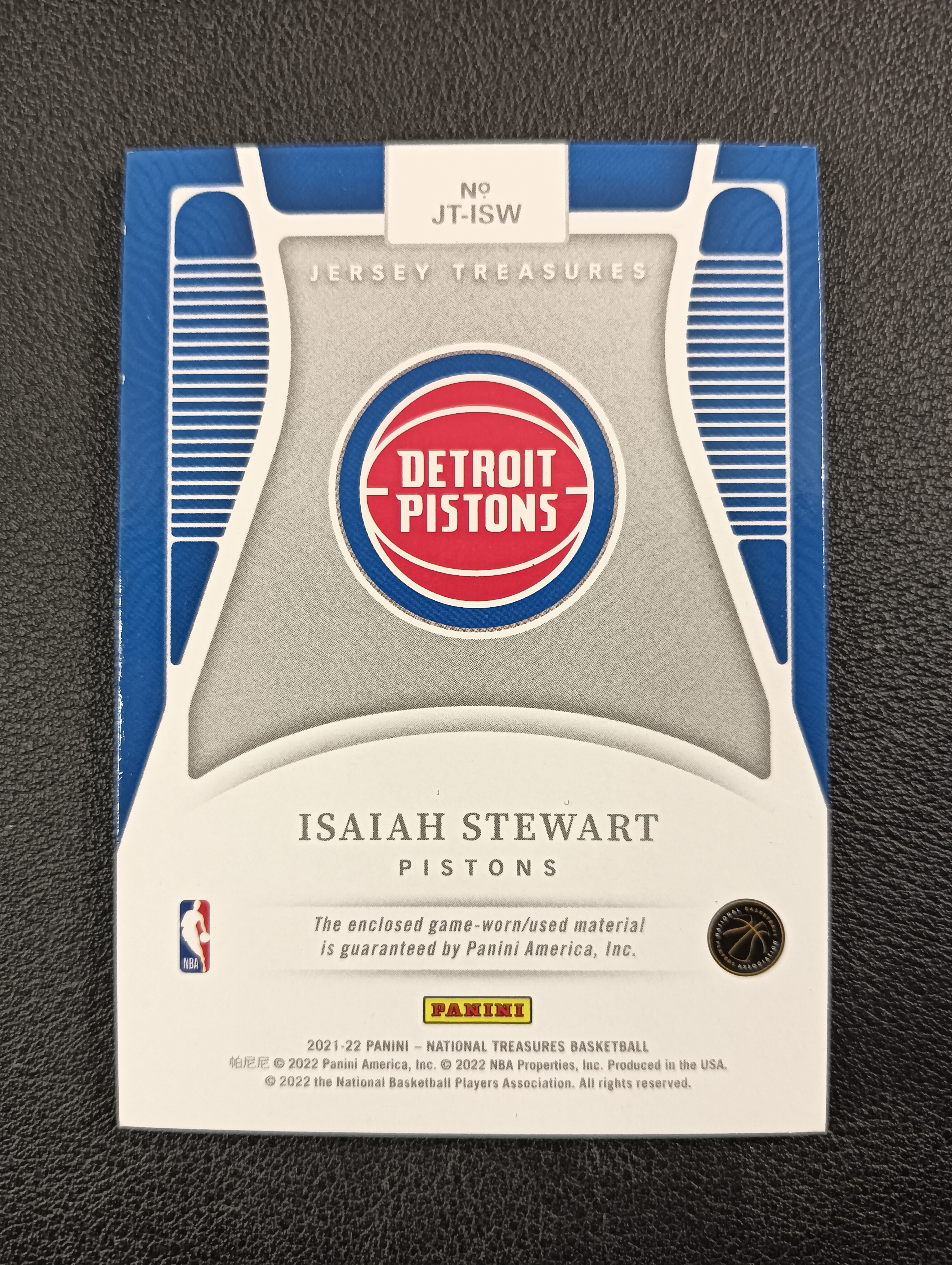 2021-22 PANINI 国宝 ISAIAH STEWART 【卡仓-冰冰075】活塞 以赛亚斯图尔特 银版 JERSEY TREASURES 球衣物料卡 /99编 NO.JT-ISW