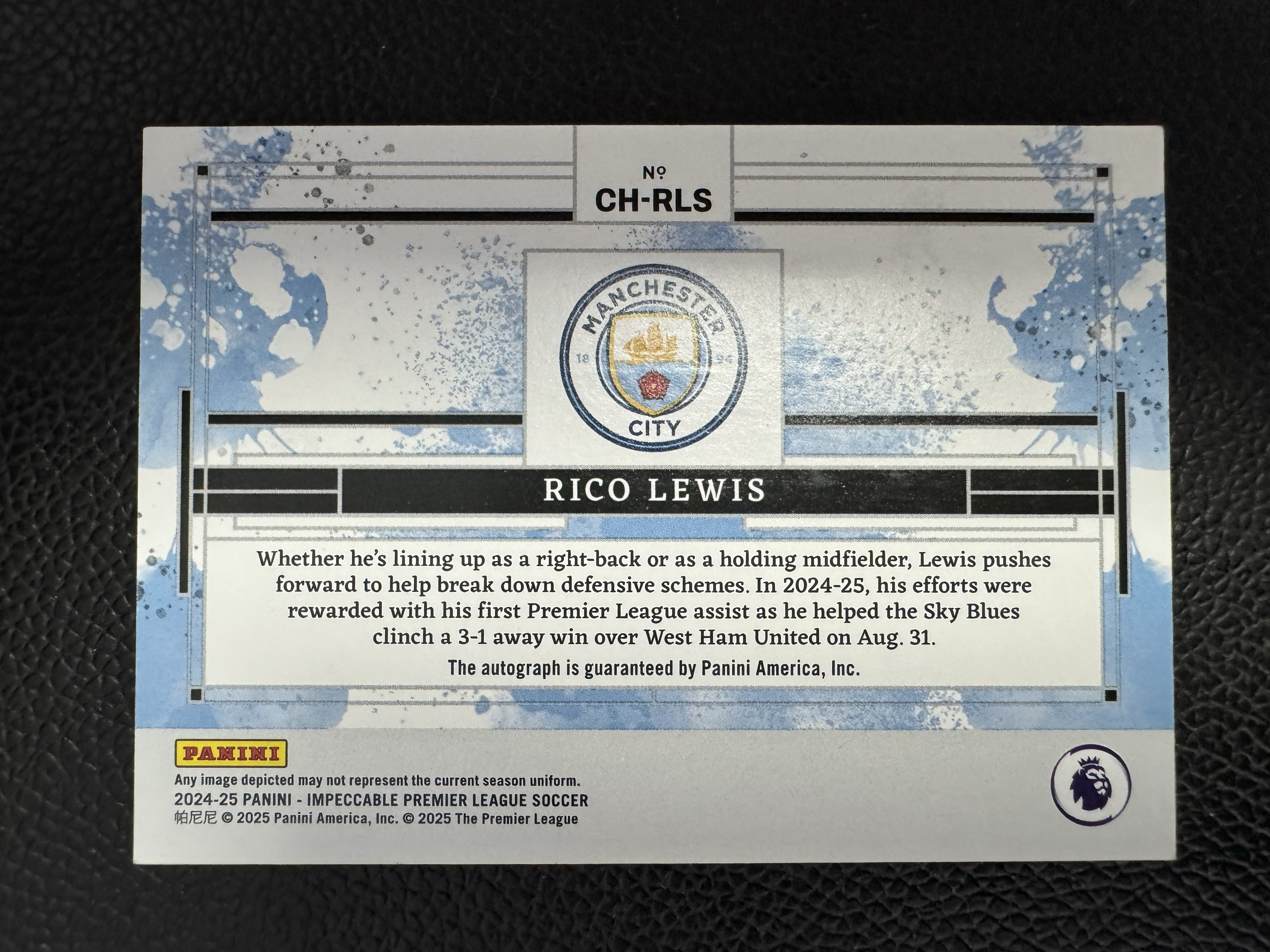 2024-25 Panini Impeccable Rico Lewis 英超 小真金 英格兰 曼城 里科 刘易斯 俱乐部历史 完美签 57/94编 卡品如图【HKY】