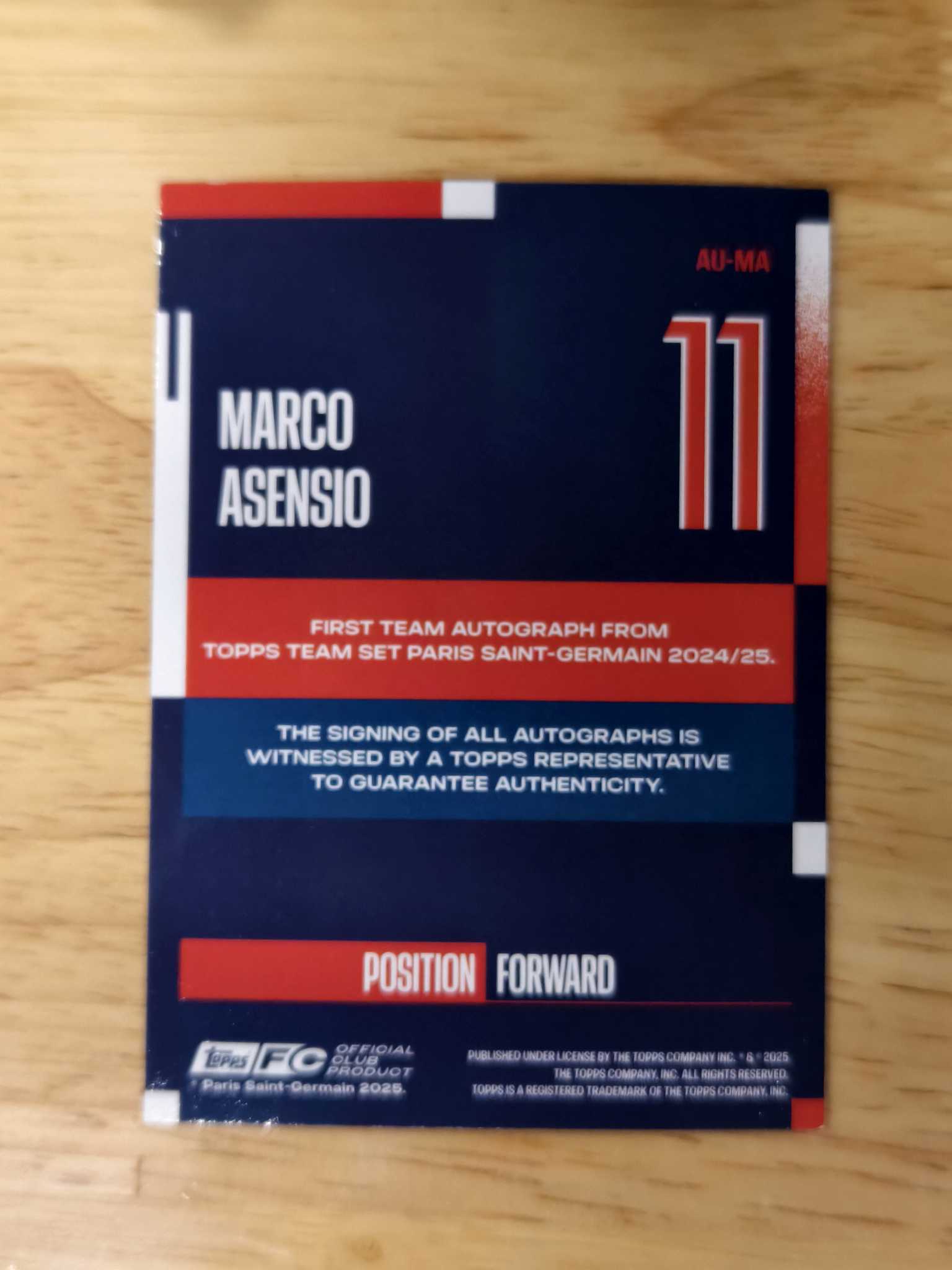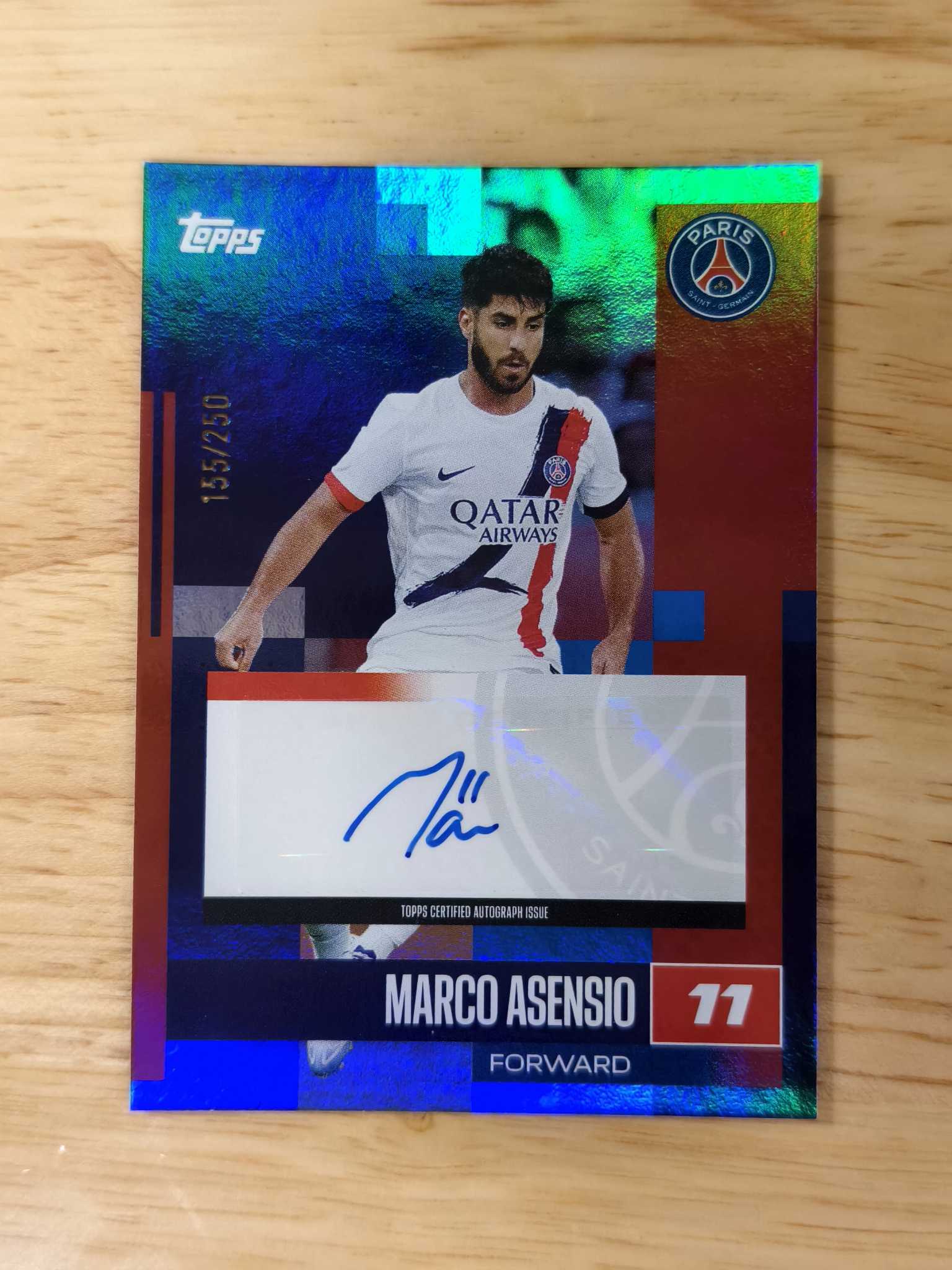 2024-25 Topps 巴黎队盒 Marco Asensio 阿森西奥 250编 签字 巴黎圣日耳曼 皇马 西班牙 附带卡砖