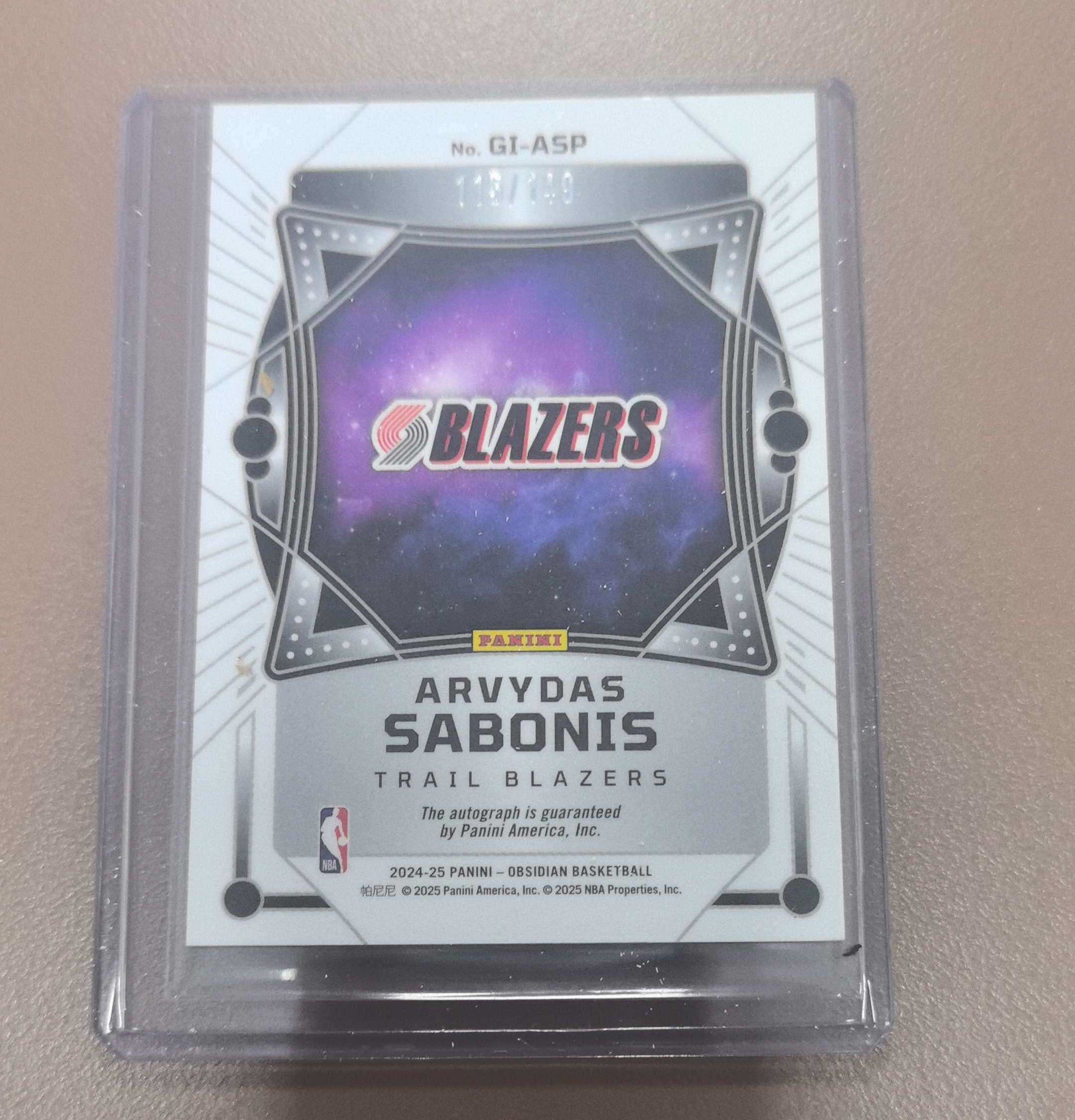 2024-25 Panini Obsidian Arvydas Sabonis 黑曜石系列 开拓者名宿 萨博尼斯 115/149 编 签字卡 收藏佳品