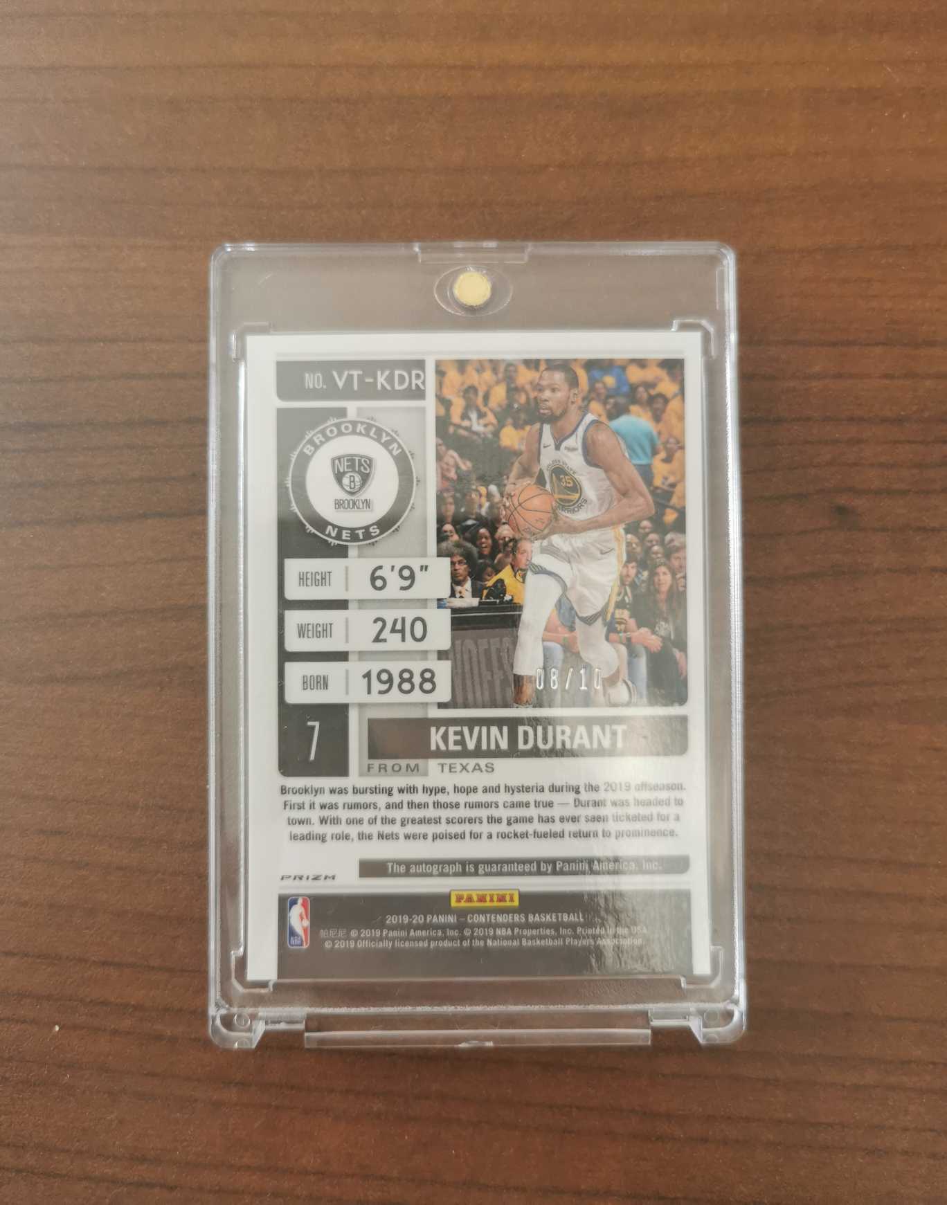 2019-20 Panini Contenders Kevin Durant 勇士队 凯文 杜兰特 KD 球票 金折 卡签 签字 08/10编 库里队友 边角不错 联盟超巨 值得收藏
