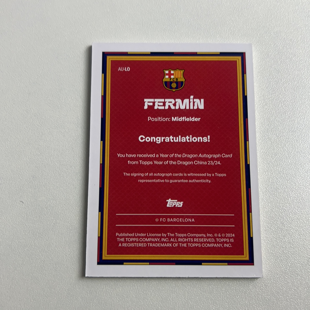2024 Topps 球队限定 Fermín López 巴萨龙 FERMIN 西甲 巴塞罗那 费尔明 新秀RC 08/15编 低编 签字 签名卡品如图 (3100)