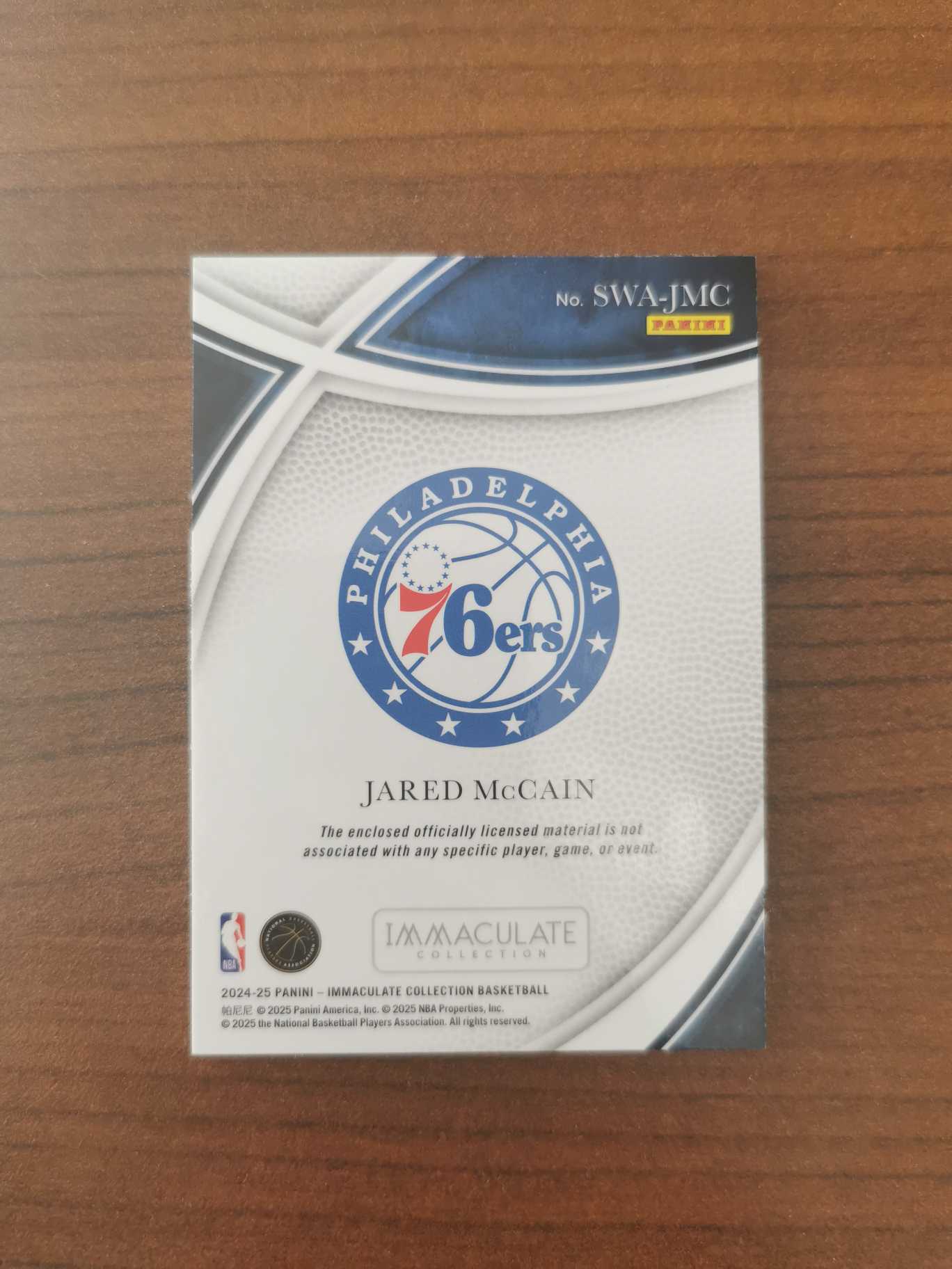 2024-25 Panini Immaculate Jared McCain RC 76人 魔仙哥 贾里德 麦凯恩 新秀 29/99编 三色暴力切割 正rp patch 潜力新星 值得收藏 厚卡边角微白