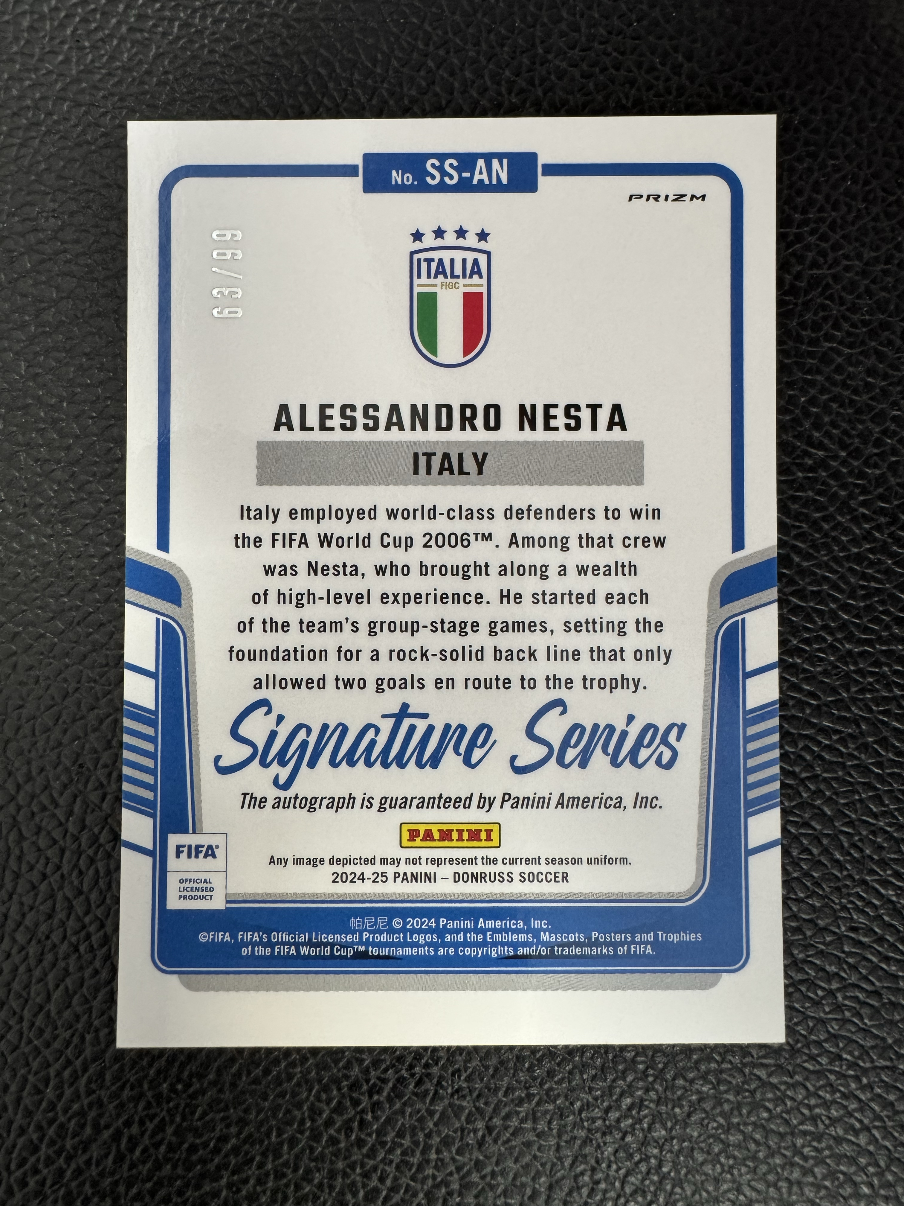 2024-25 Panini Donruss Alessandro Nesta 杜蕾斯 国际版 意大利 传奇 内斯塔 63/99编 签字 卡品如图【HKY】
