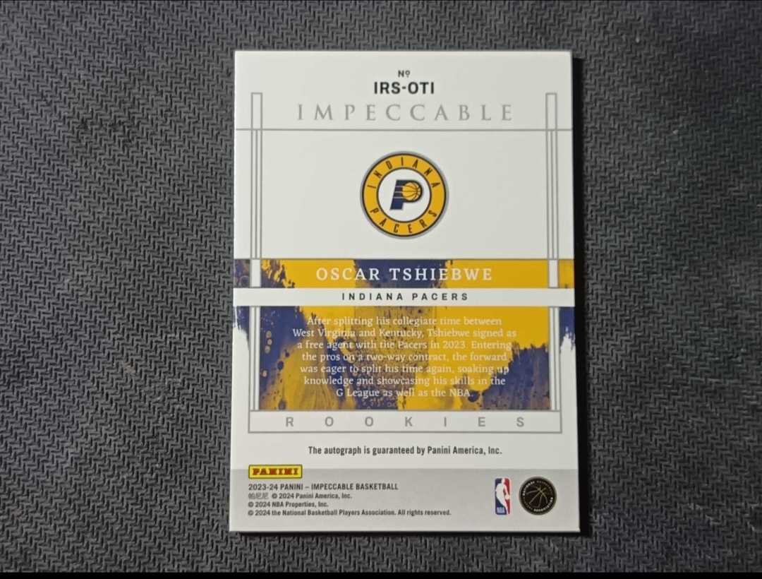 2024-25 Panini Impeccable Oscar tshiebwe RC 奥斯卡 希布维 新秀 小真金 签字 99编 步行者 卡签