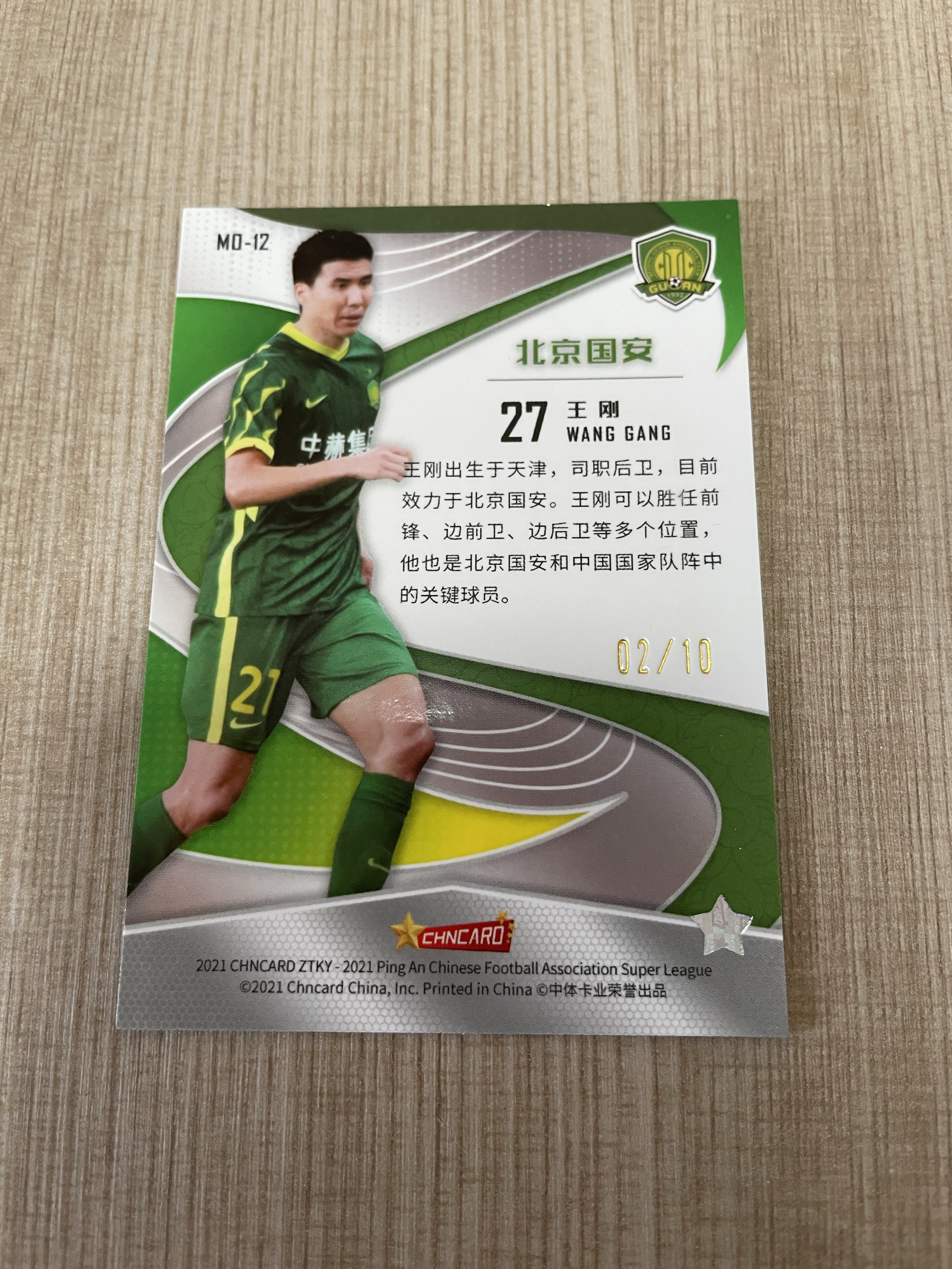 2021 中体卡业 CSL ZTKY(折射) 北京国安 王刚 10编 金 爆金 时刻特卡 国足 中国体育 卡品如图 足协杯冠军有升值空间 天津
