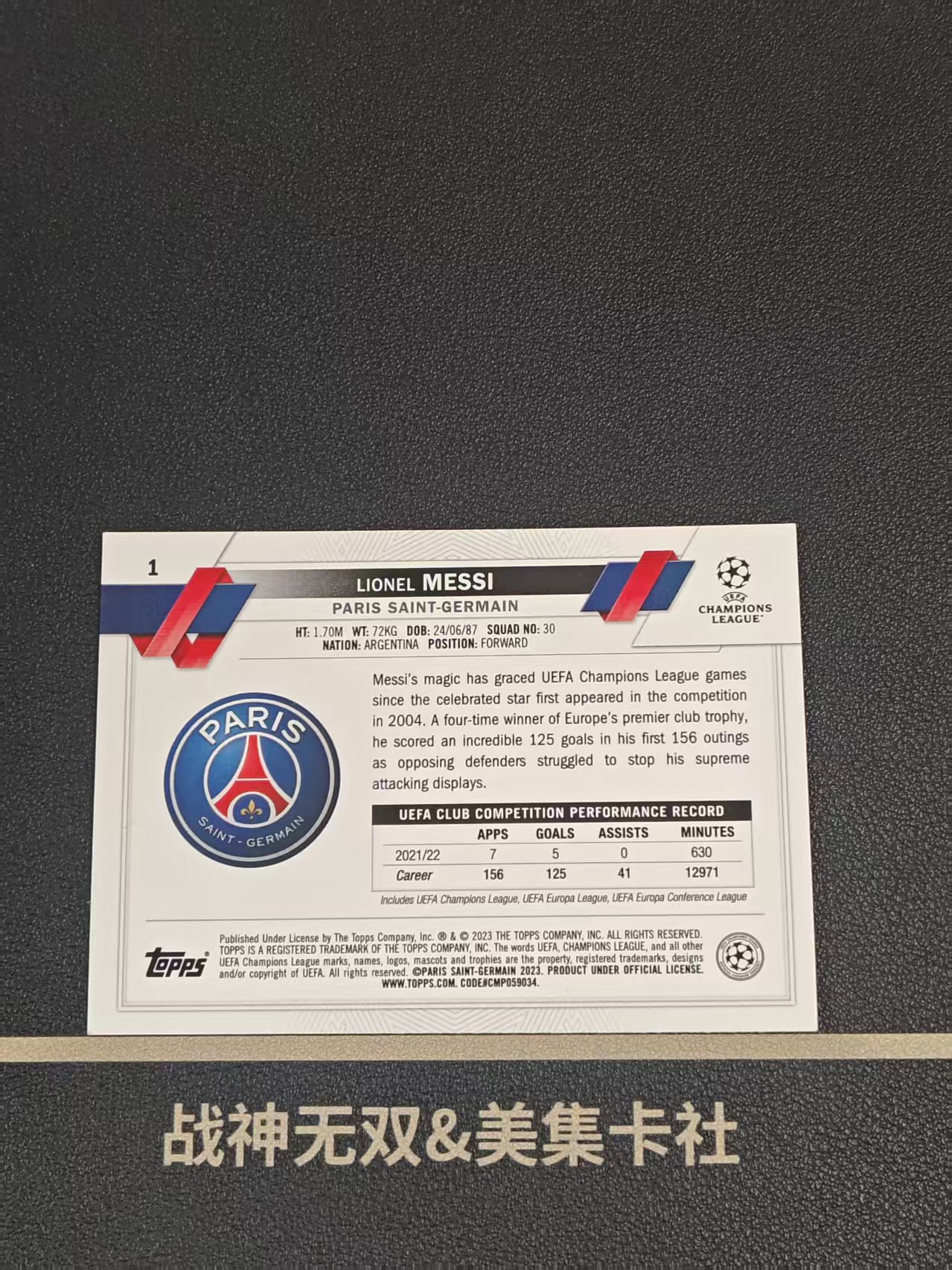 2023 Topps UEFA Champions League Lionel Messi ucc 梅西 阿根廷 巴萨 大巴黎 球王 实卡精美 战神无双(壹米捌伍)