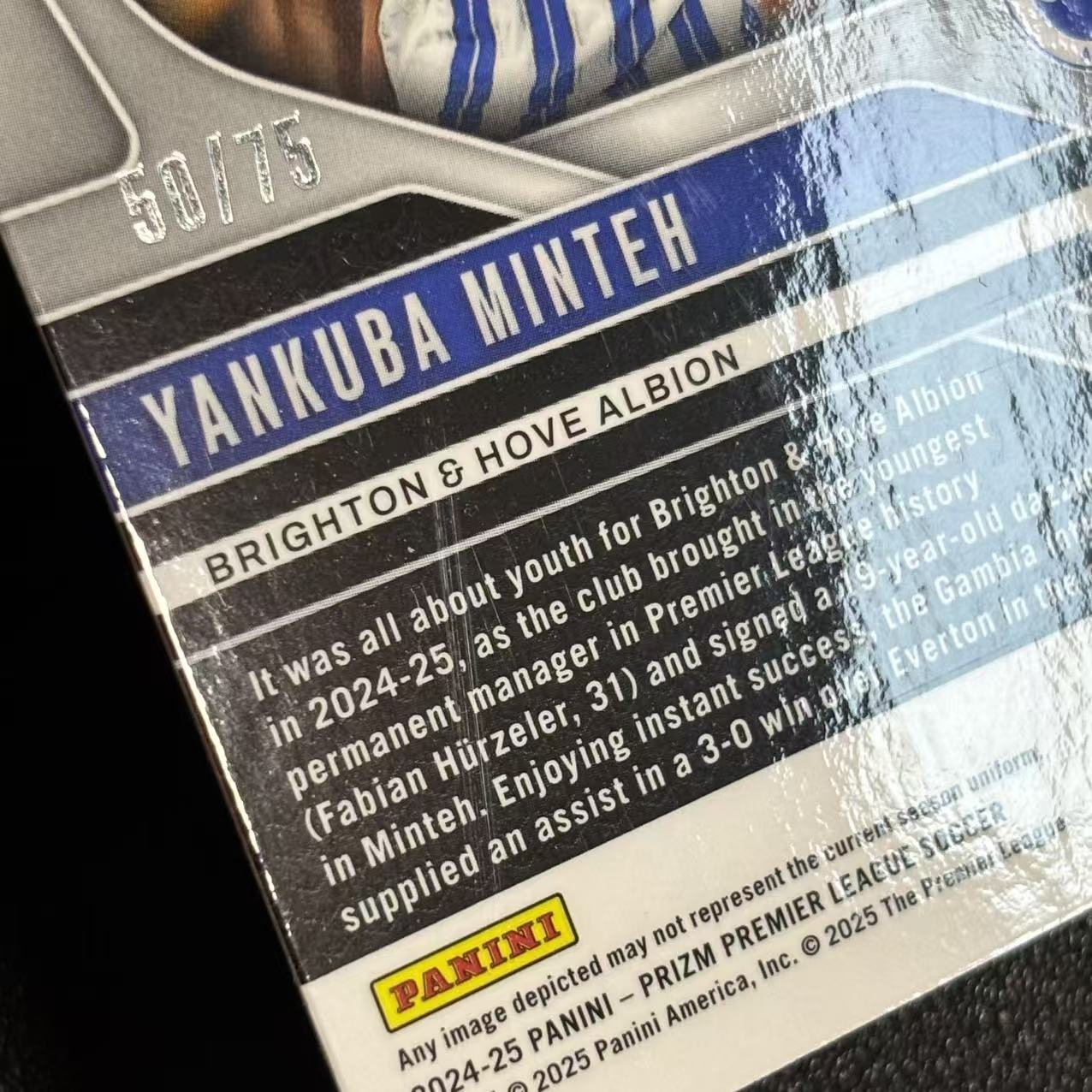2024-25 【TSS代卖-预付80%】 Prizm YANKUBA MINTEH 英超 PZ 布莱顿 扬库巴 明特 75编 蓝碎冰折 卡品如图 JH4365 ZK94-楊