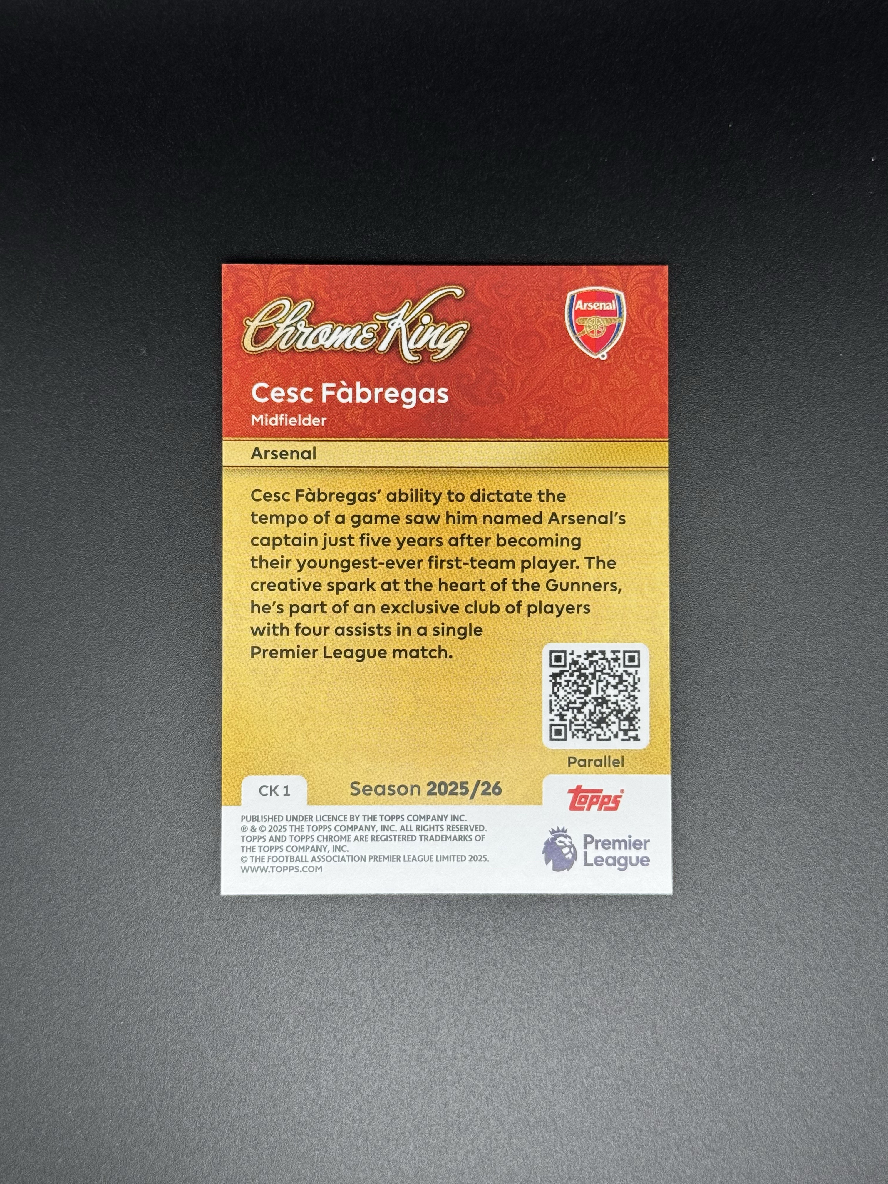 2025 Topps 英超 Cesc Fabregas 2025-26 Topps 英超 法布雷加斯 阿森纳巴萨 绿碎冰 祖母绿 大比例 chrome king 微瑕