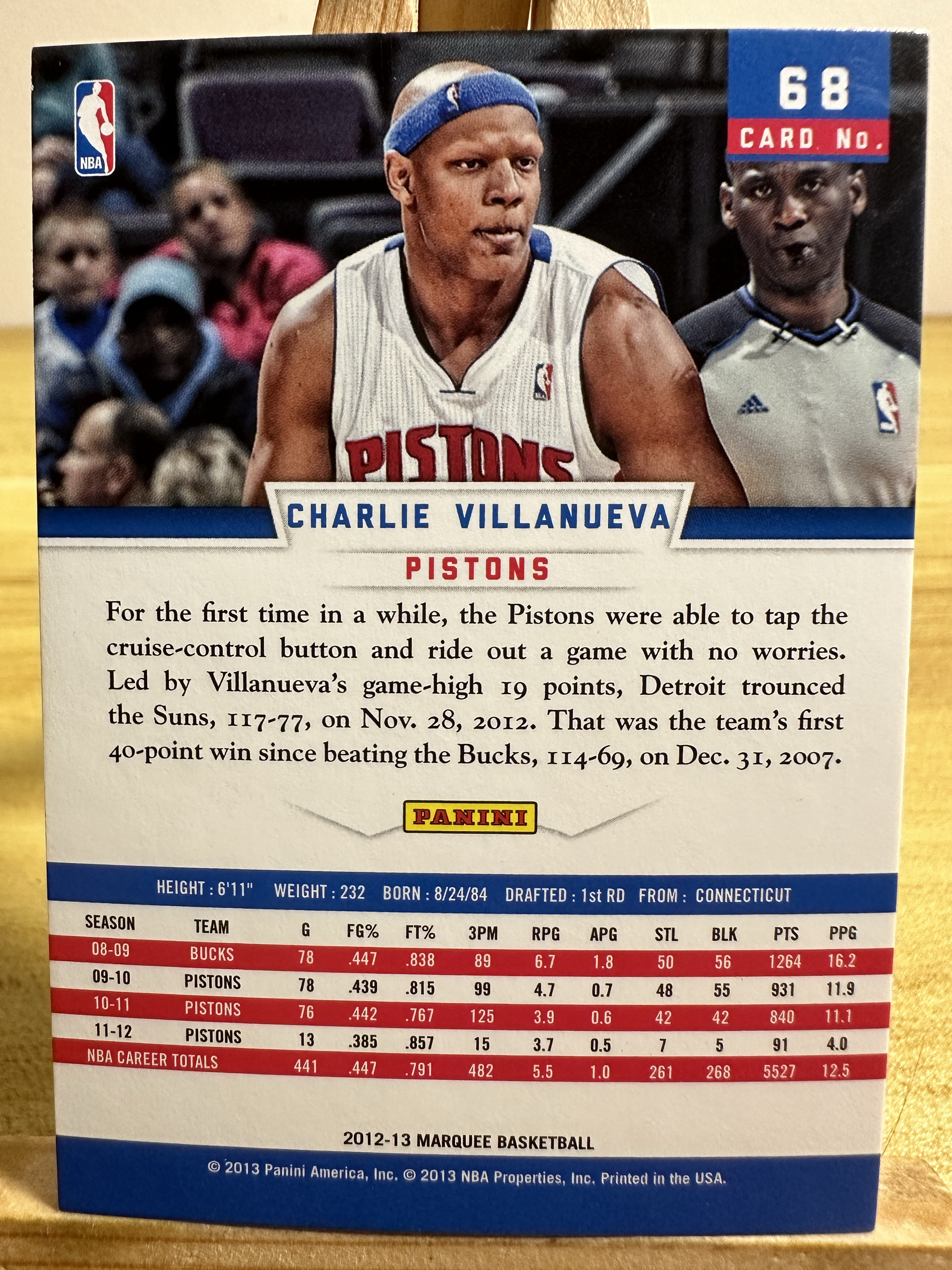 2012-13 Panini Marquee Charlie Villanueva 活塞 查理 维兰纽瓦 马奎 base e72