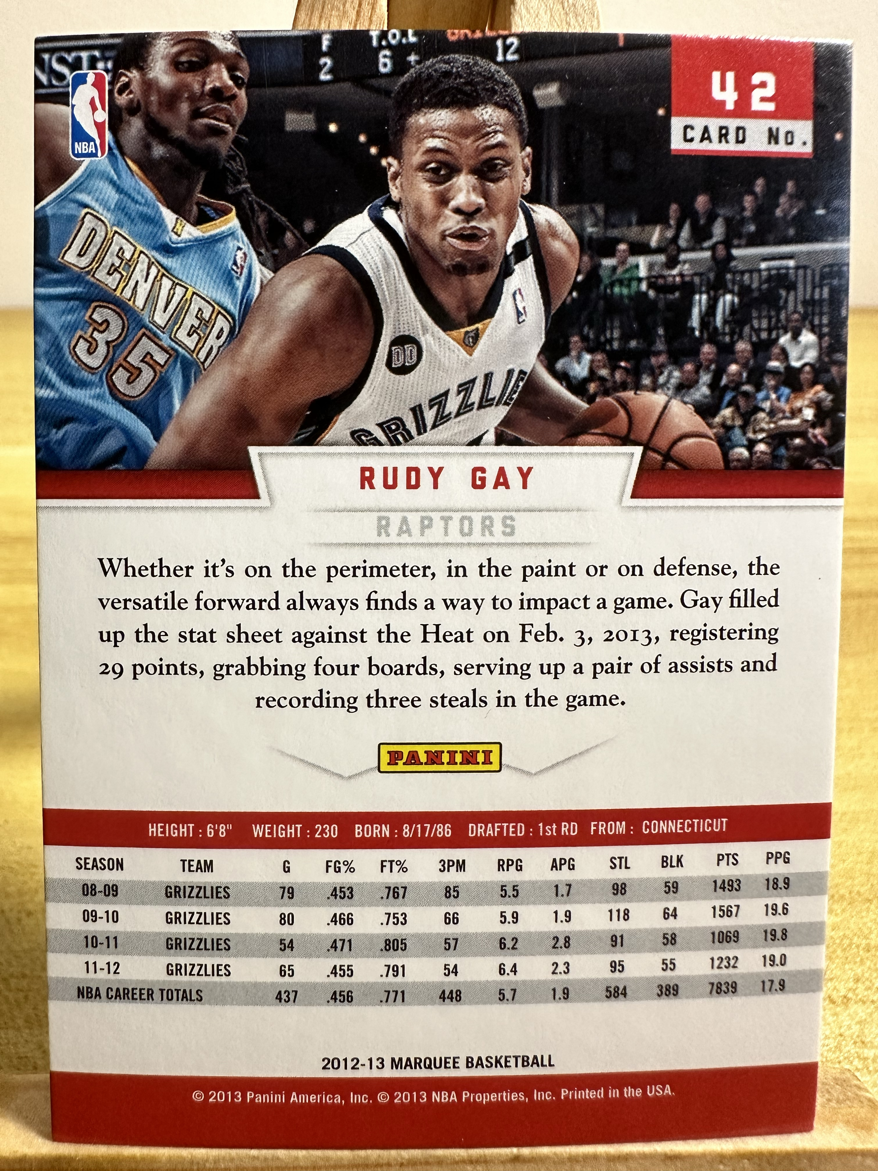 2012-13 Panini Marquee Rudy Gay 猛龙 鲁迪 盖伊 马奎 base e70