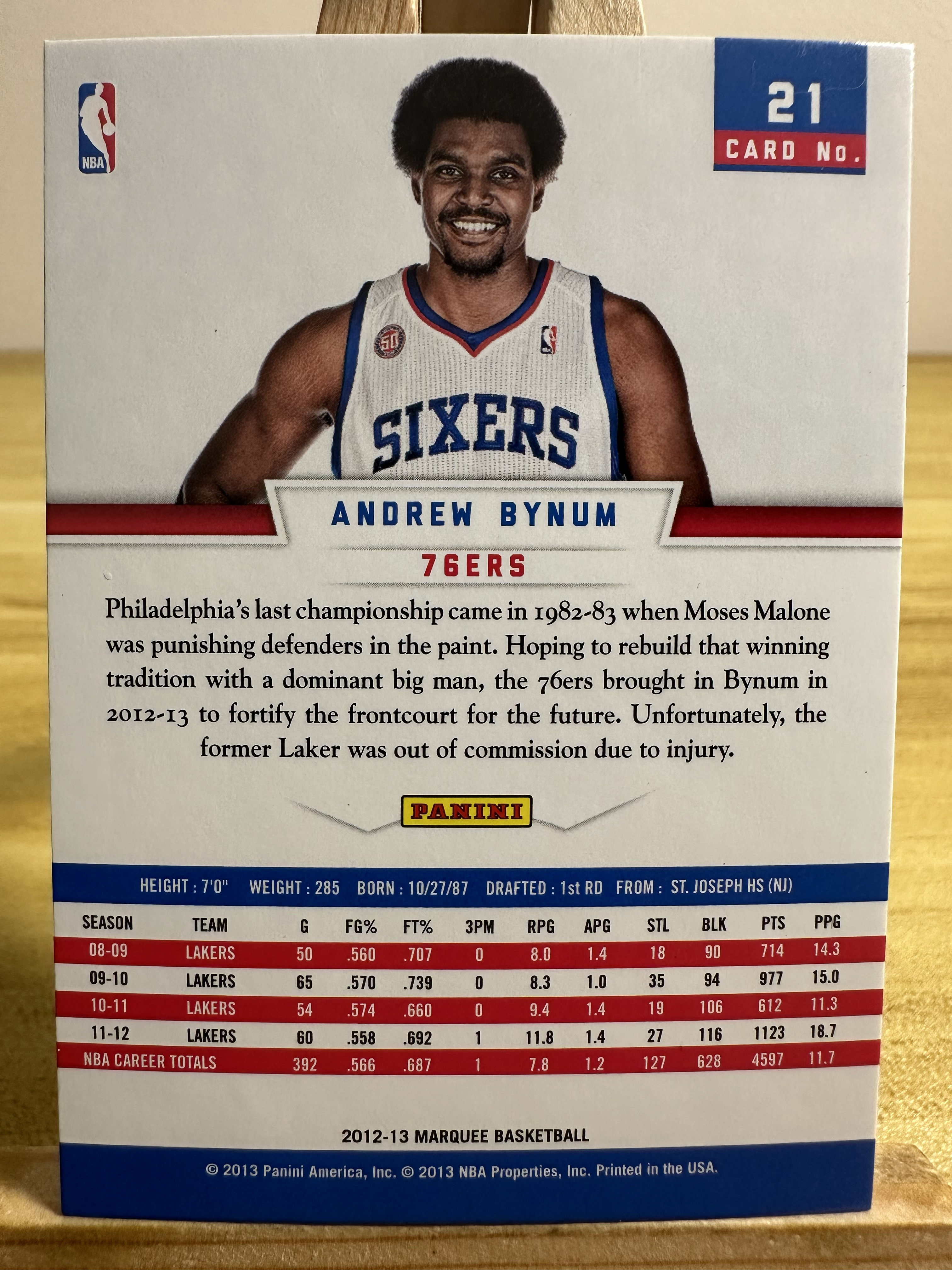 2012-13 Panini Marquee Andrew Bynum 76人 安德鲁 拜纳姆 马奎 base e23
