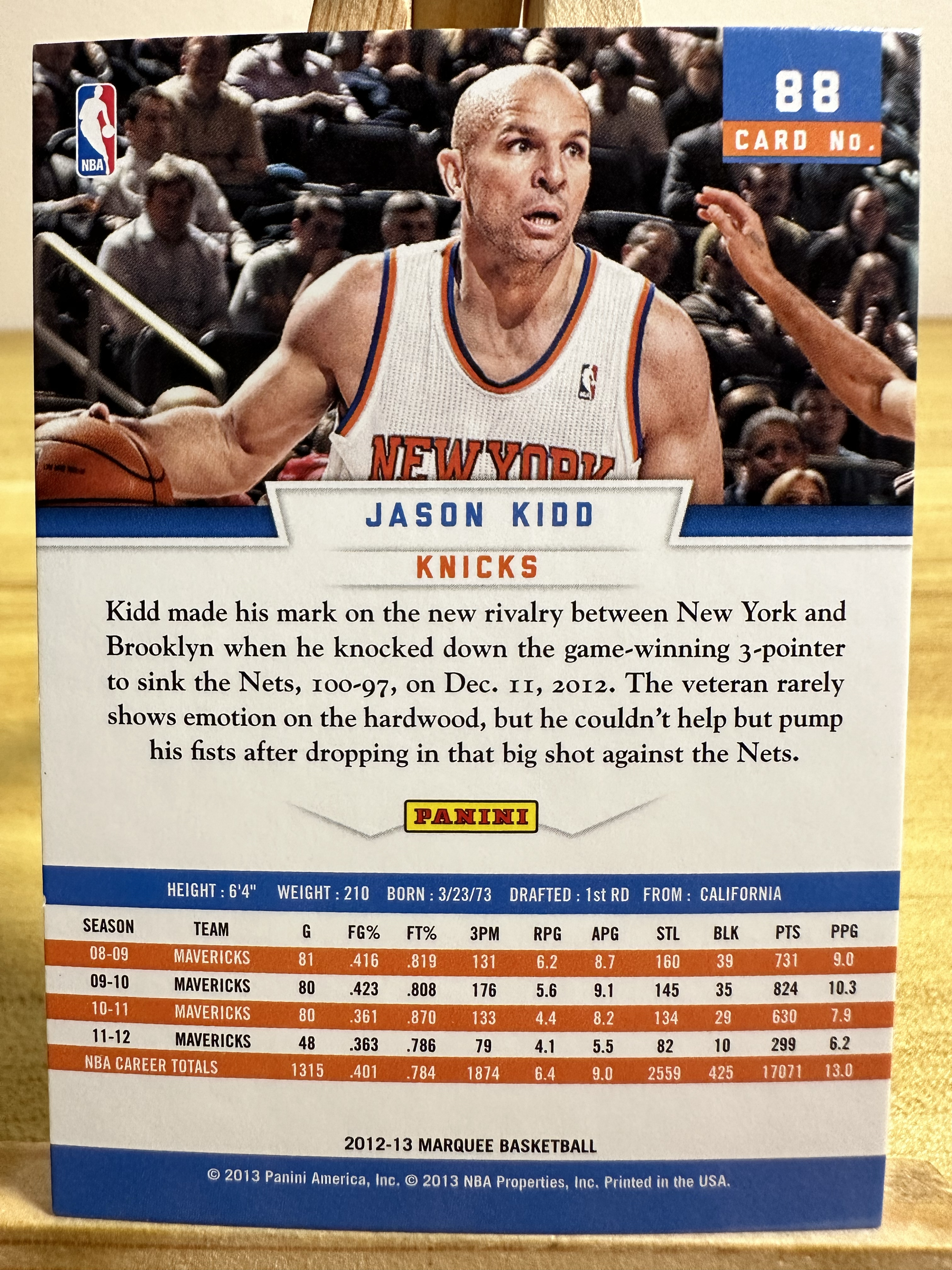 2012-13 Panini Marquee Jason Kidd 尼克斯 杰森 贾森 基德 马奎 base e13