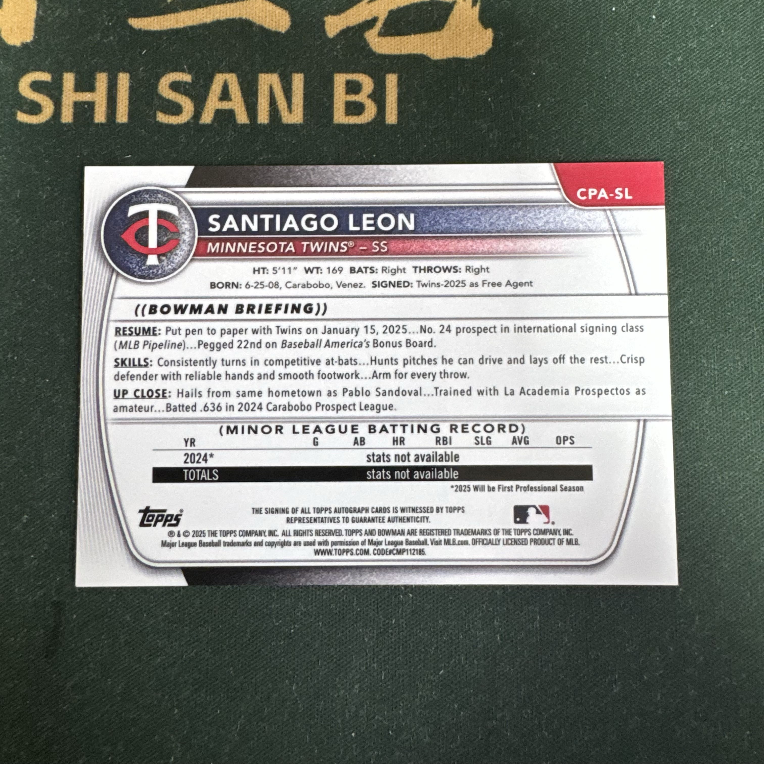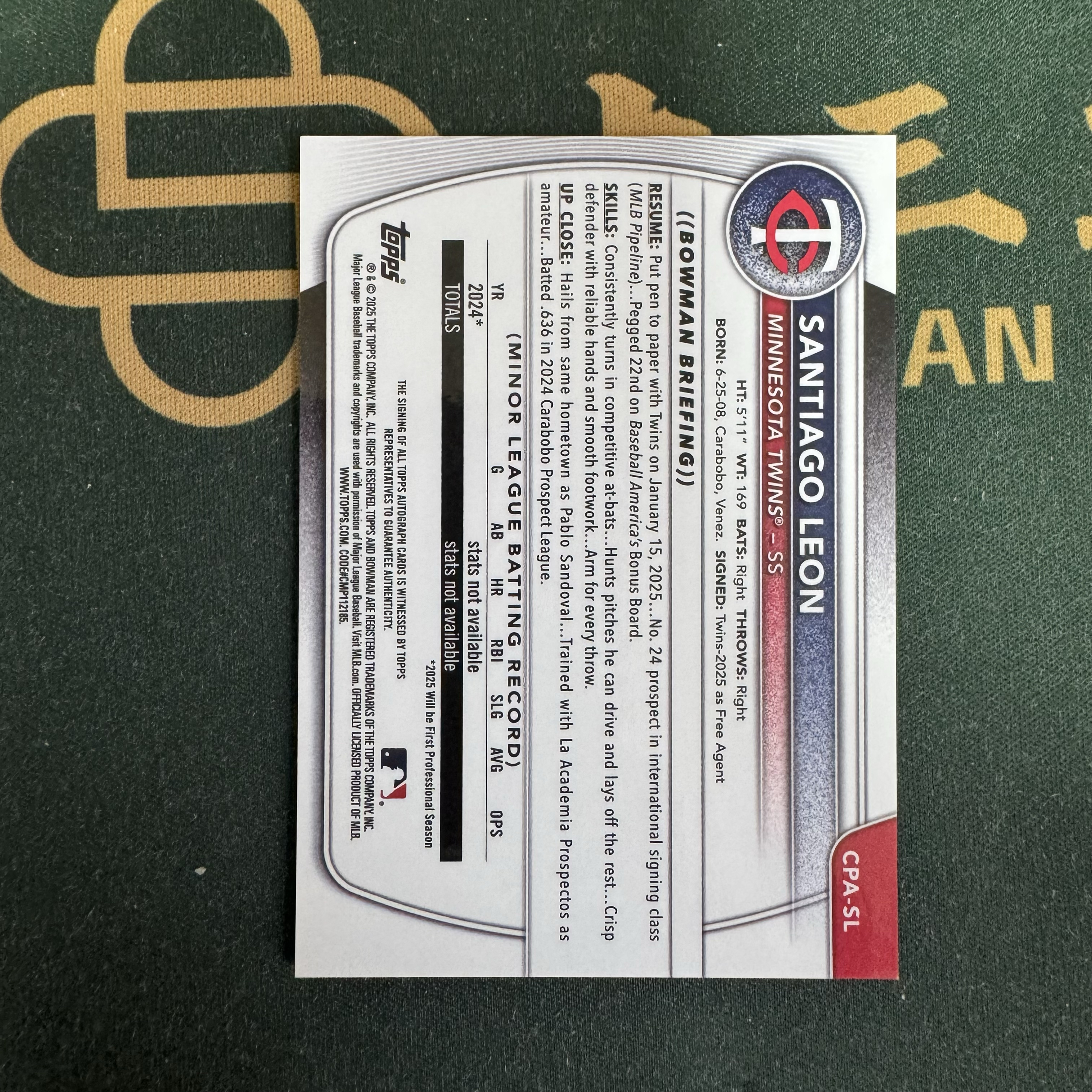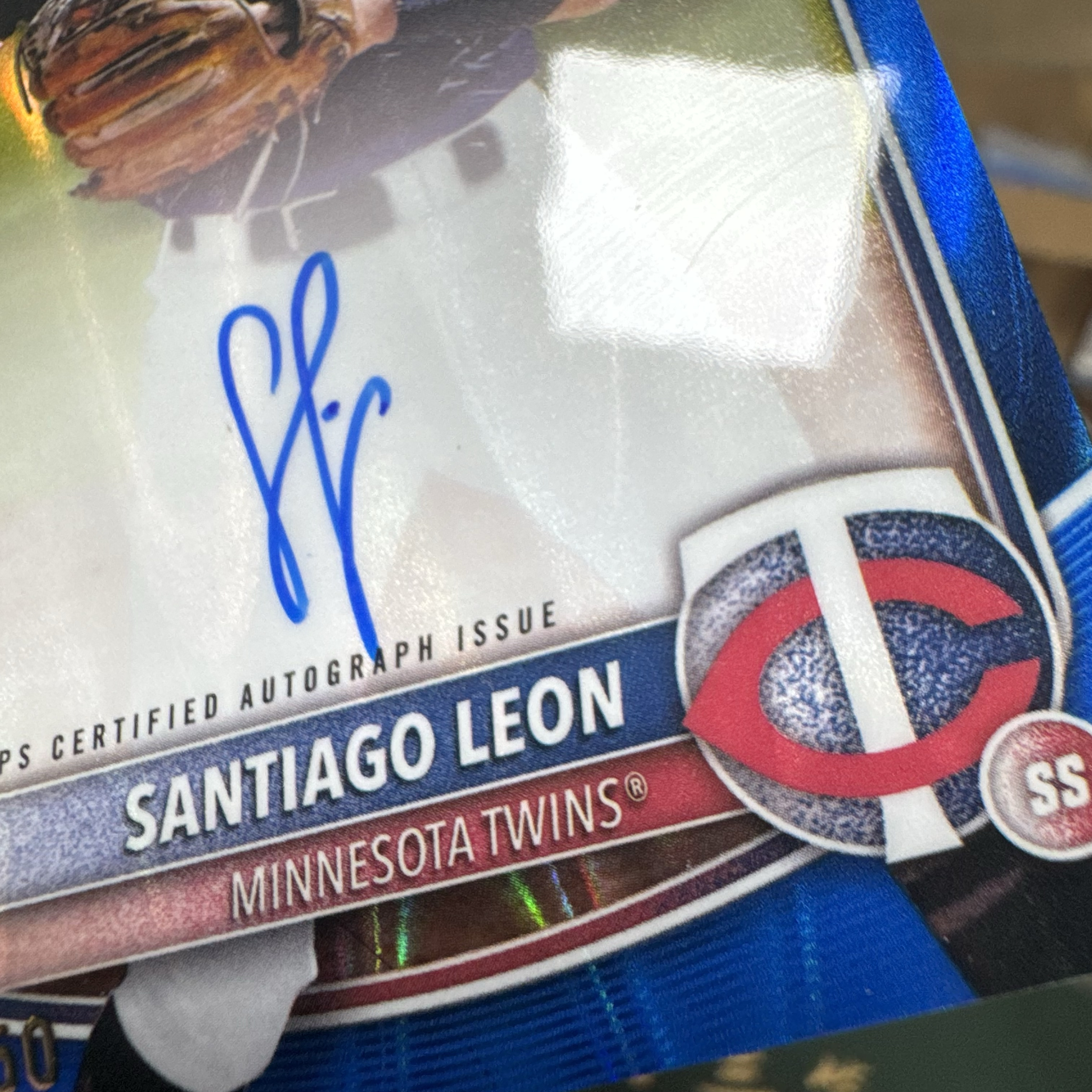 2025 Topps Chrome Santiago Leon 【十三笔】Bowan Chrome 1st Santiago Leon 双城队 签字 签名 150编  蓝熔岩折 卡品如图(YY)