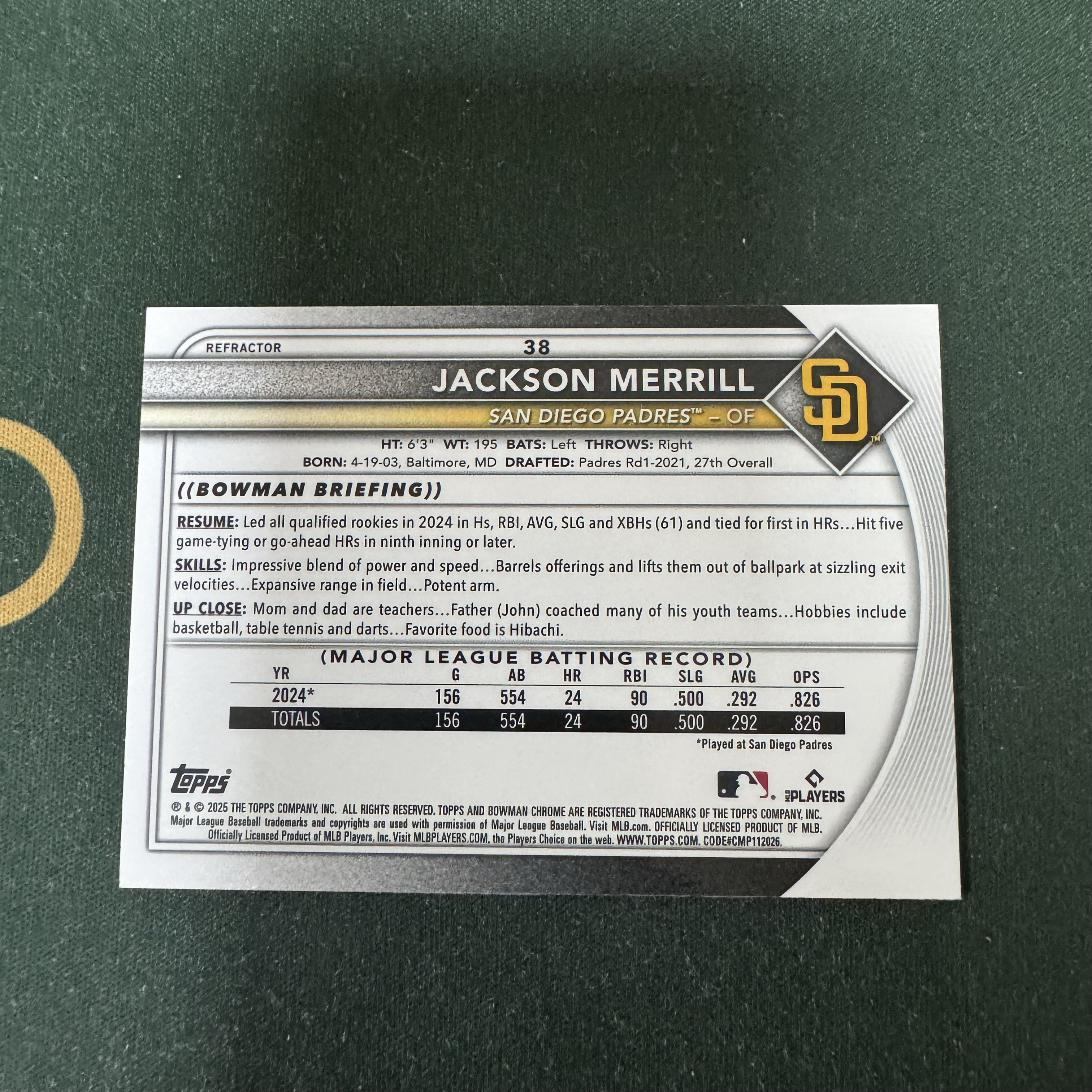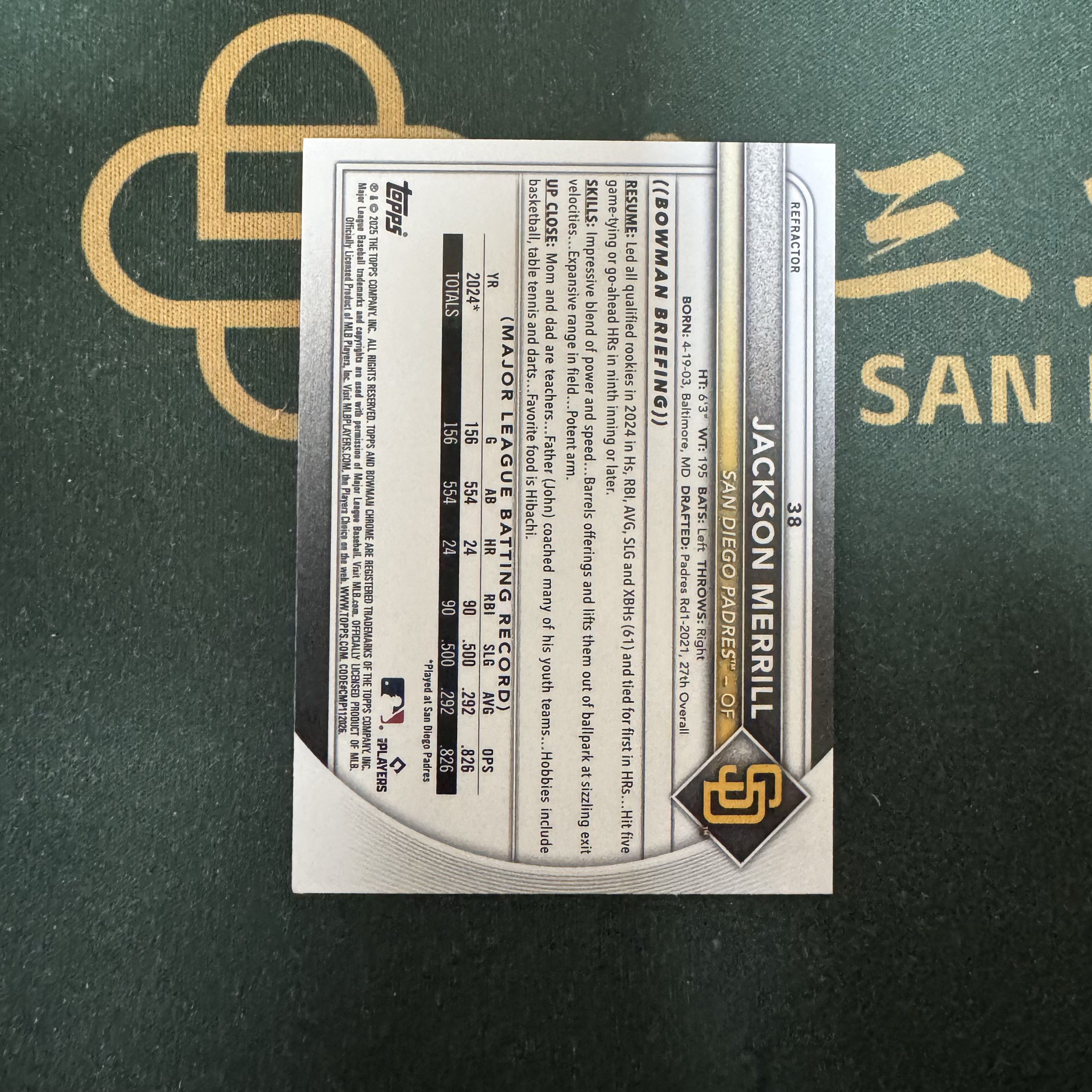 2025 Topps Chrome Jackson Merrill 【十三笔】Bowan Chrome  Jackson Merrill 教士队  499编 银折 卡品如图(YY)