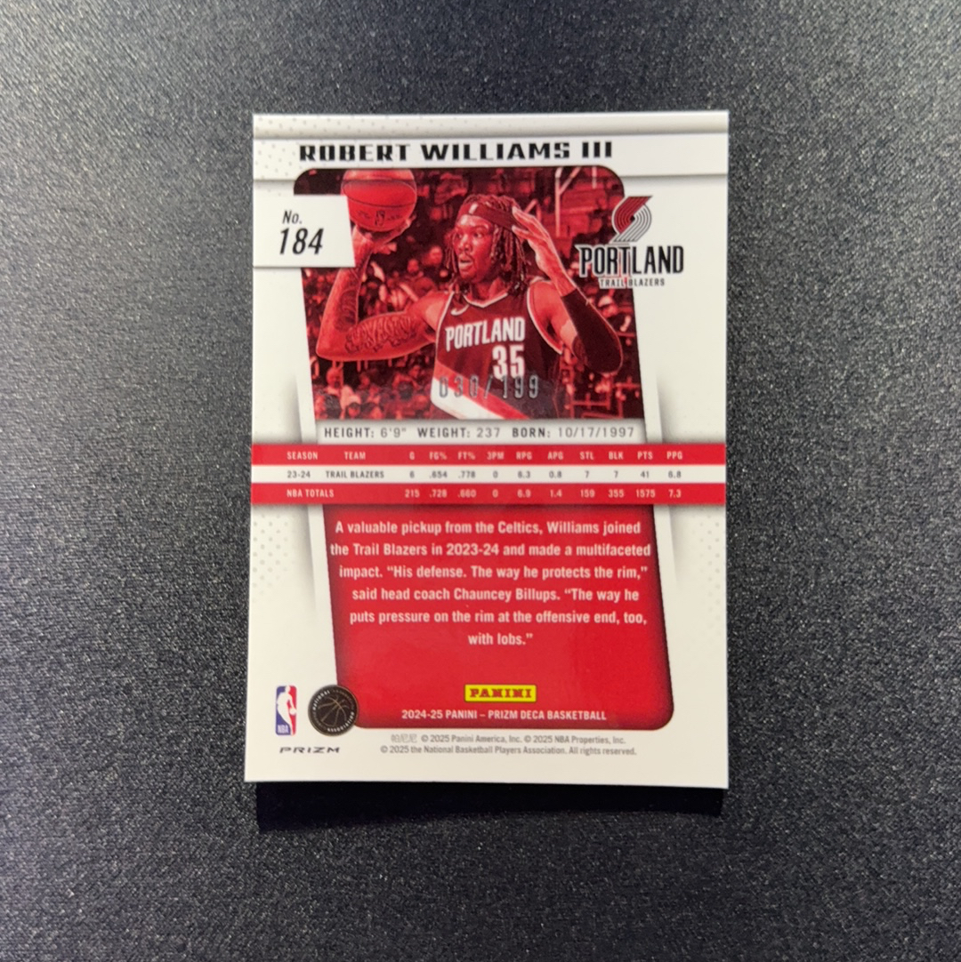 2024-25 Panini Prizm Robert Williams III 罗伯特 威廉姆斯 三世 开拓者 Deca 复古 红折 030/199编 杨瀚森塔图姆利拉德队友 卡品如图