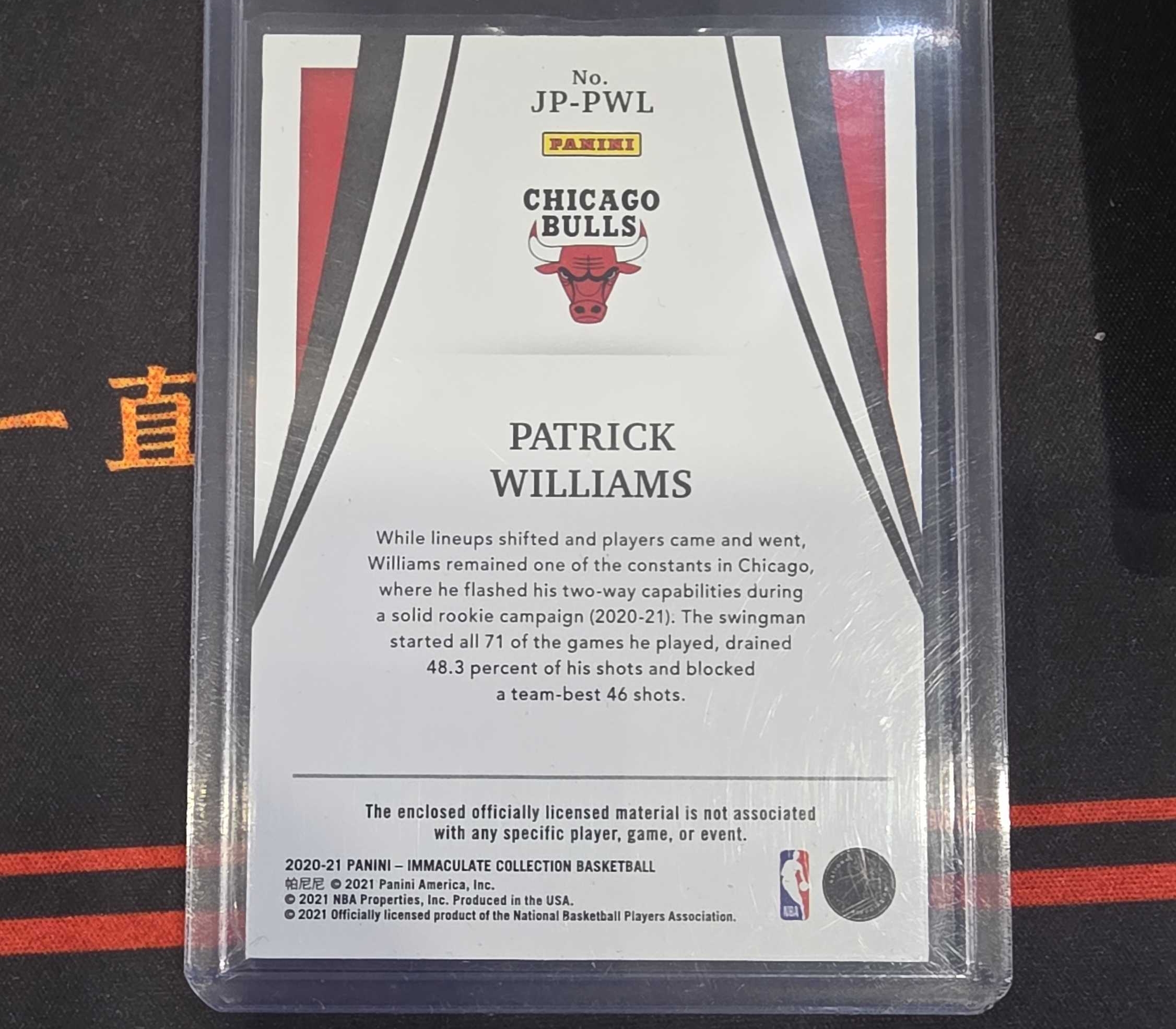 2020-21 Panini Immaculate Collection Patrick Williams RC 帕特里克 威廉姆斯 公牛 新秀 patch 大窗 物料 球衣 背号 爱咪咪 /50编