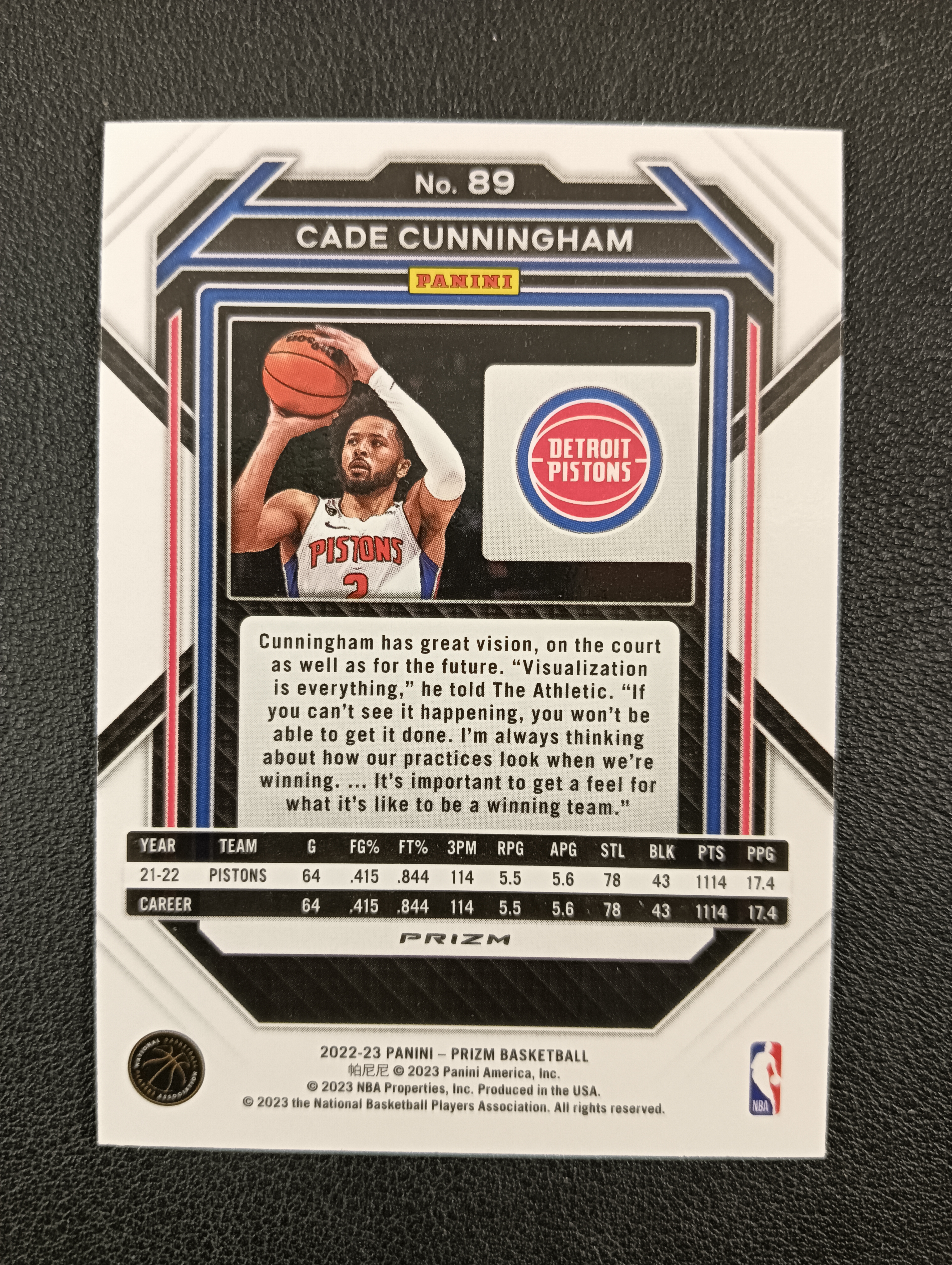 2022-23 PANINI PRIZM CADE CUNNINGHAM 【卡仓-起飞059】活塞 凯德康宁汉姆 坎宁安 CC 银折射 BASE NO.89