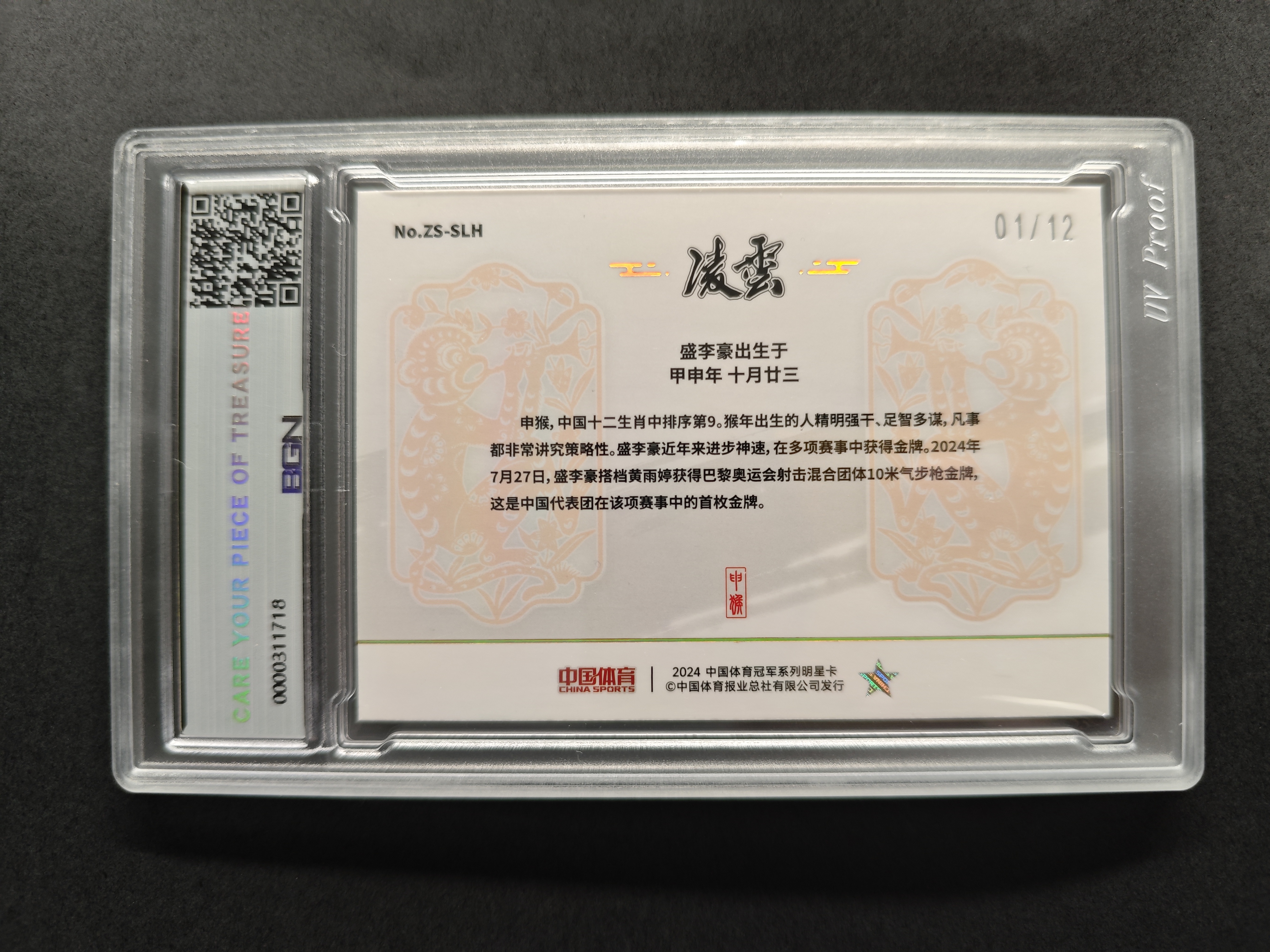【逍遥卡舍】2024 中国体育 凌云 射击 盛李豪 签字 卡签 01/12 首编 折射 生肖签 干饭哥 世界冠军 奥运冠军 bgn10分评级签字