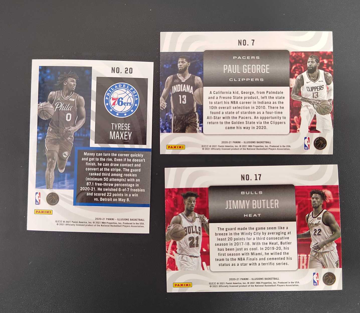 2020-21 Panini Illusions Tyrese Maxey RC 马克西 新秀 保罗乔治 吉米巴特勒 双人 特卡 浮雕 前世今生 凑套收藏 Lot 3张 打包不保卡品