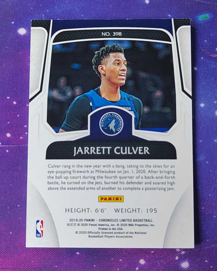 2019-20 Panini Chronicles Jarrett Culver RC 贾勒特 卡尔弗 新秀 特卡 带编 限量75编 凑套收藏 森林狼 卡品如图