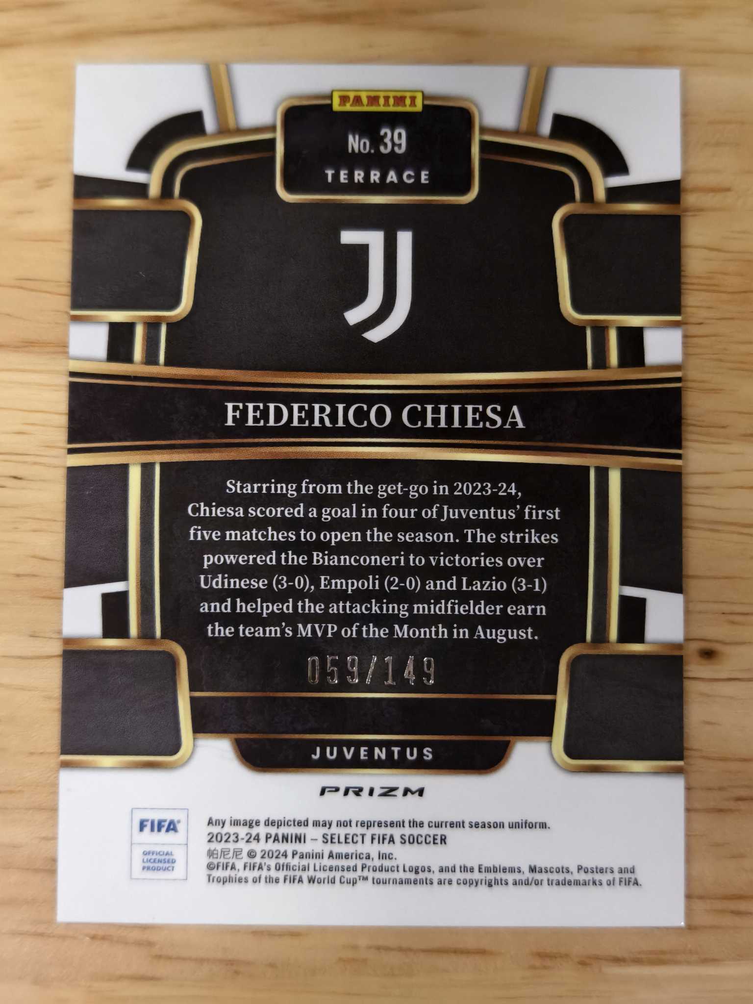 2023-24 Panini Select Federico Chiesa 基耶萨 149编 尤文图斯 红波纹 利物浦 小基耶萨 意大利 欧洲冠军 liverpool