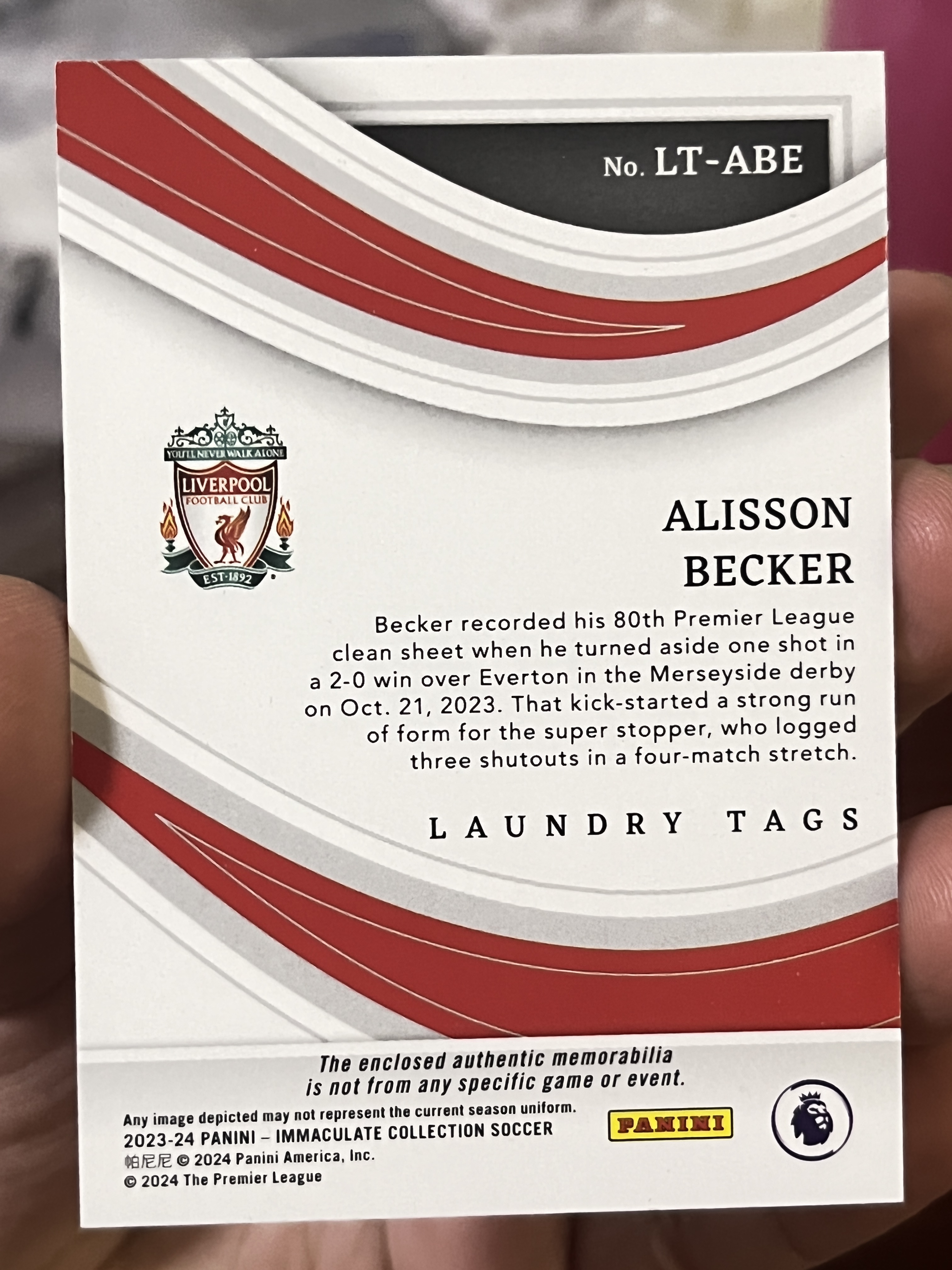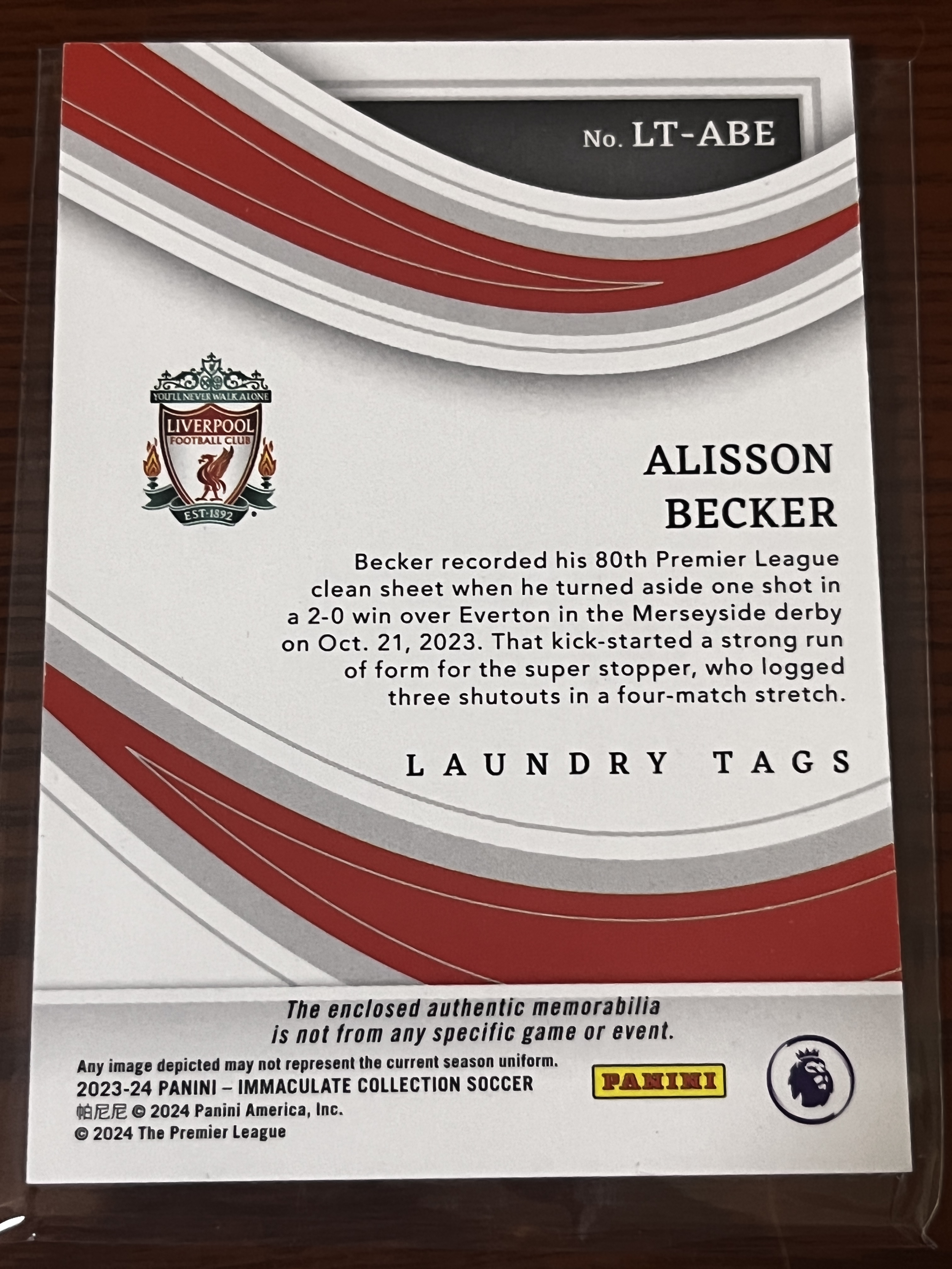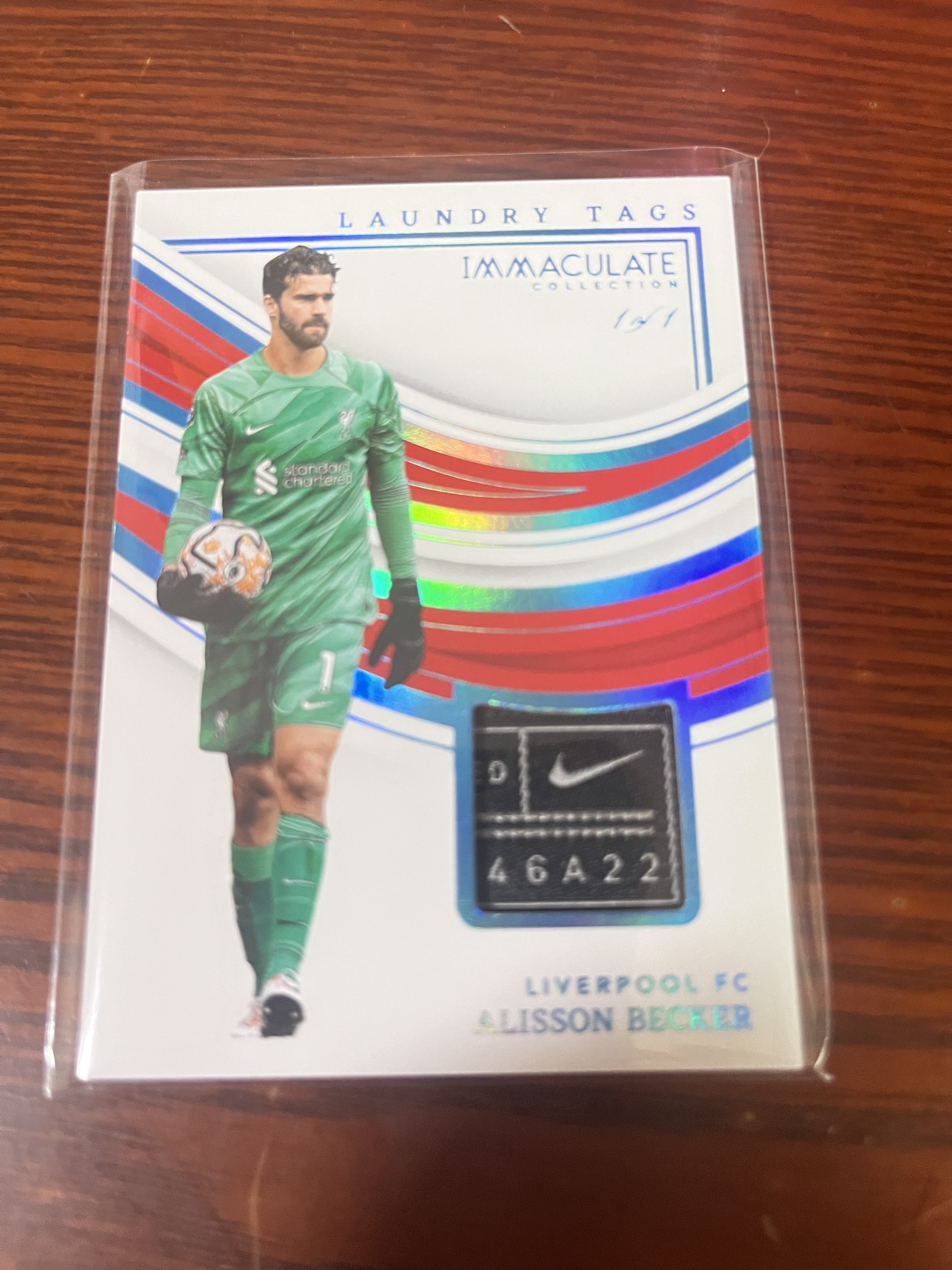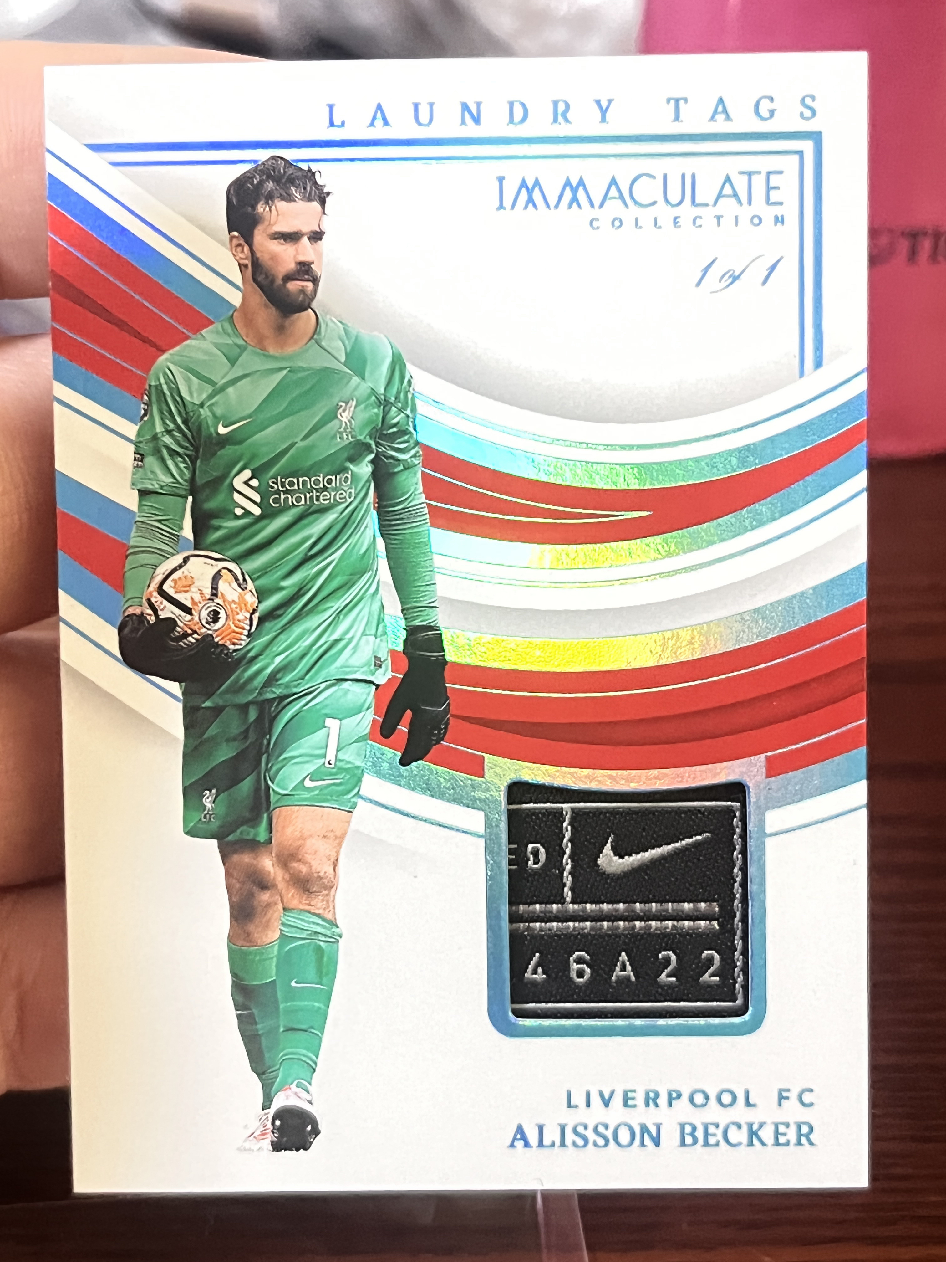 利物浦 Alisson 阿利松 巴西门神 Immaculate imm tag 湖水蓝 1/1 同背 暴力切割 水洗标 nike标志 整个系列唯一物料 切得非常好 卡品十分精美 世一门接班人