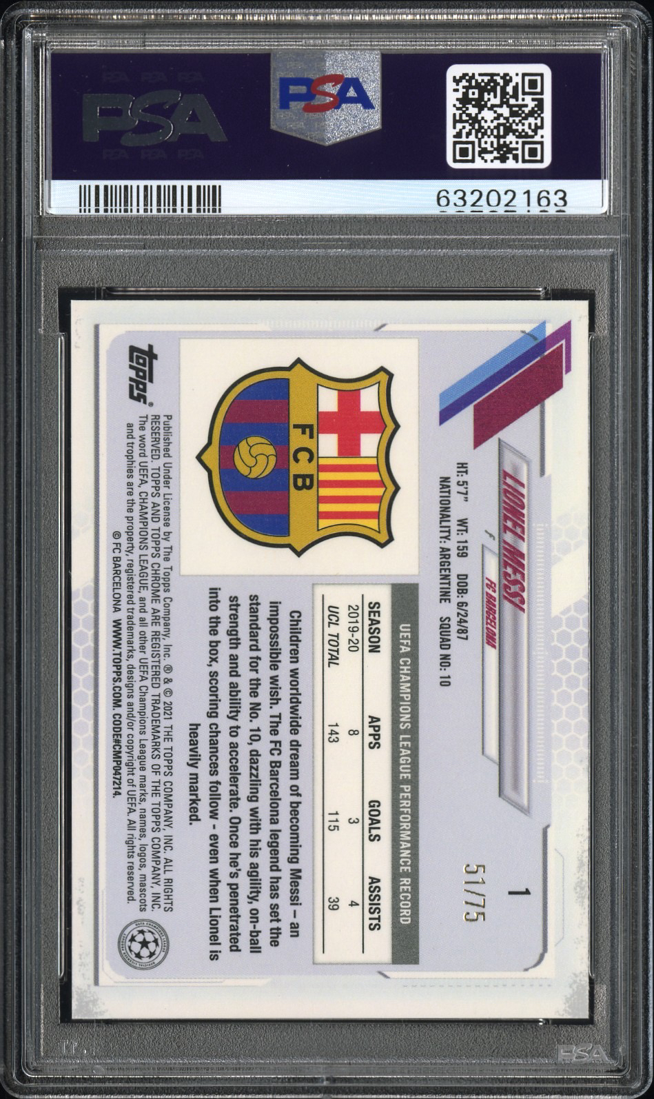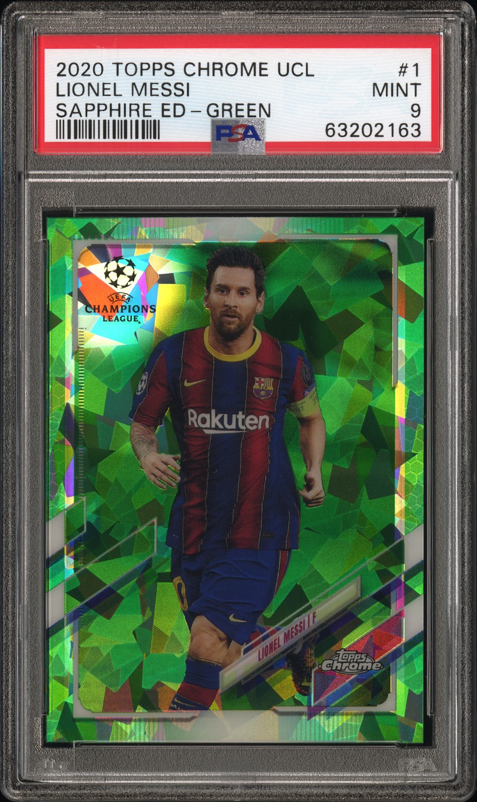 2020-21 Topps chrome sapphire Lionel Messi 梅西 蓝宝石 绿碎冰 75编 psa9分 评级卡 巴萨 巴黎圣日耳曼 绿宝石 阿根廷 最后一年巴萨选图 值得收藏