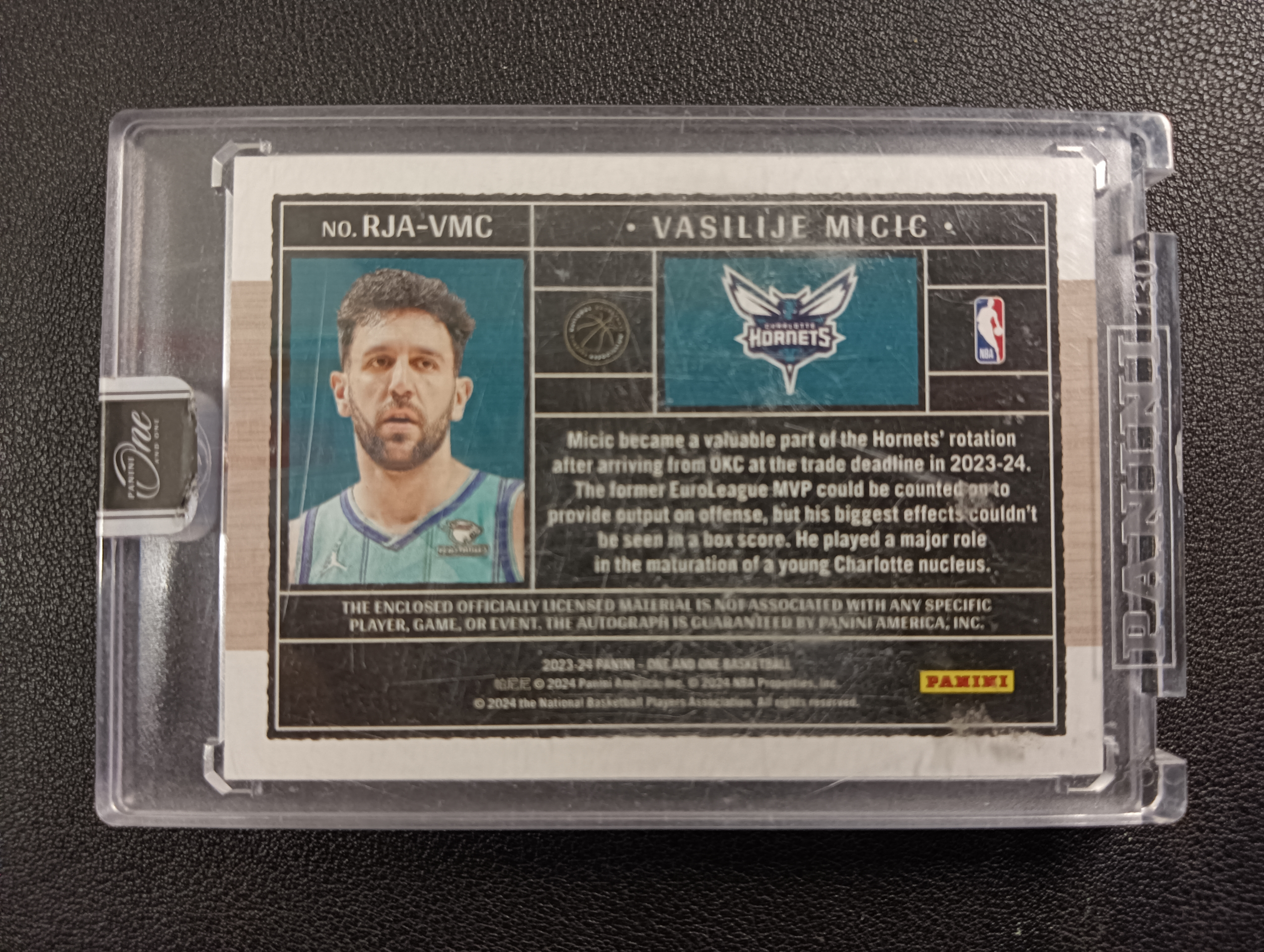 2023-24 PANINI ONE VASILIJE MICIC RC 【卡仓-冰冰076】黄蜂 瓦西里耶米齐奇 紫版 新秀球衣物料PATCH签字 卡签 /35编 原封砖 NO.RJA-VMC