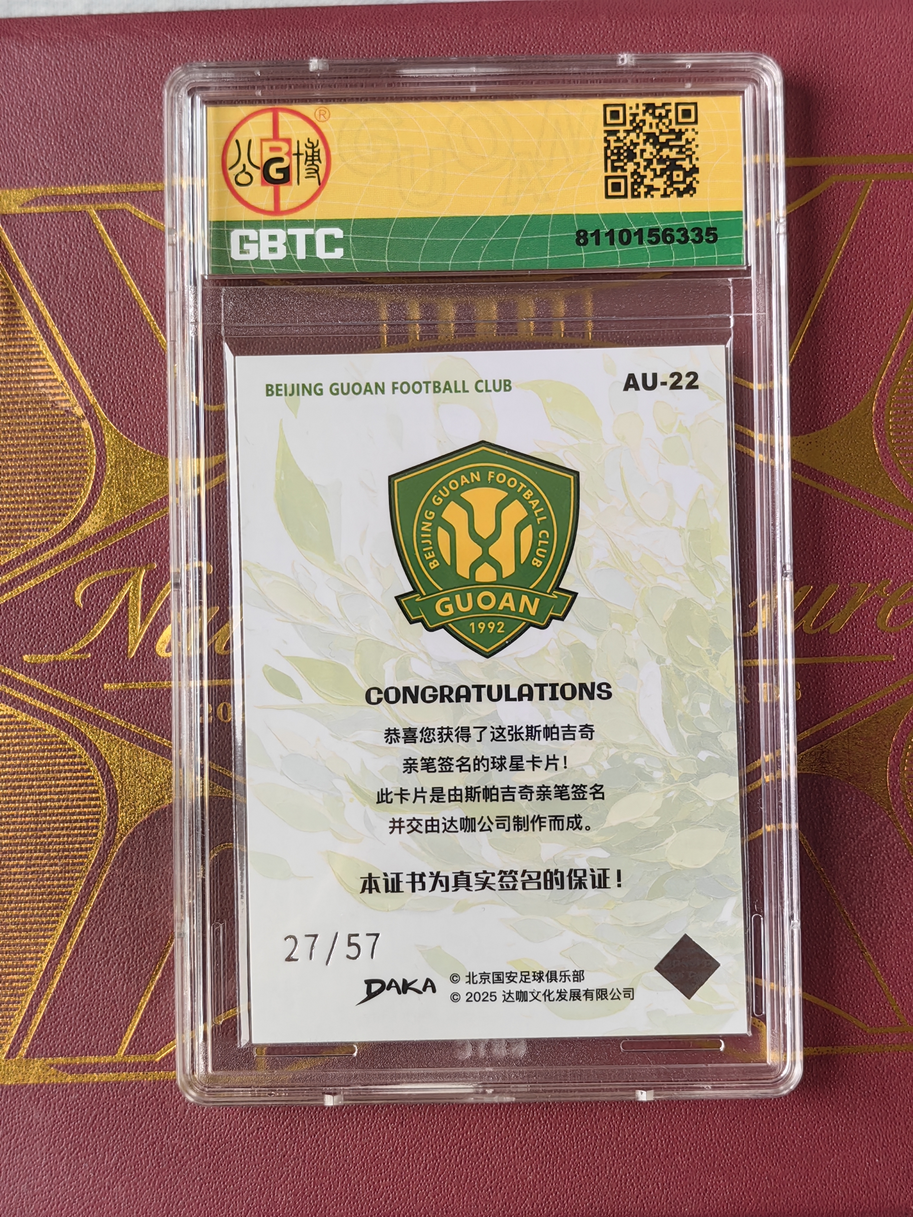 2025 DAKA 北京国安足球俱乐部 Uros Spajic 卡卡星球拍卖 达咖文化 北京国安队盒 斯帕吉奇 签字 卡签 27/57编 银折 公博评级10/9.5分