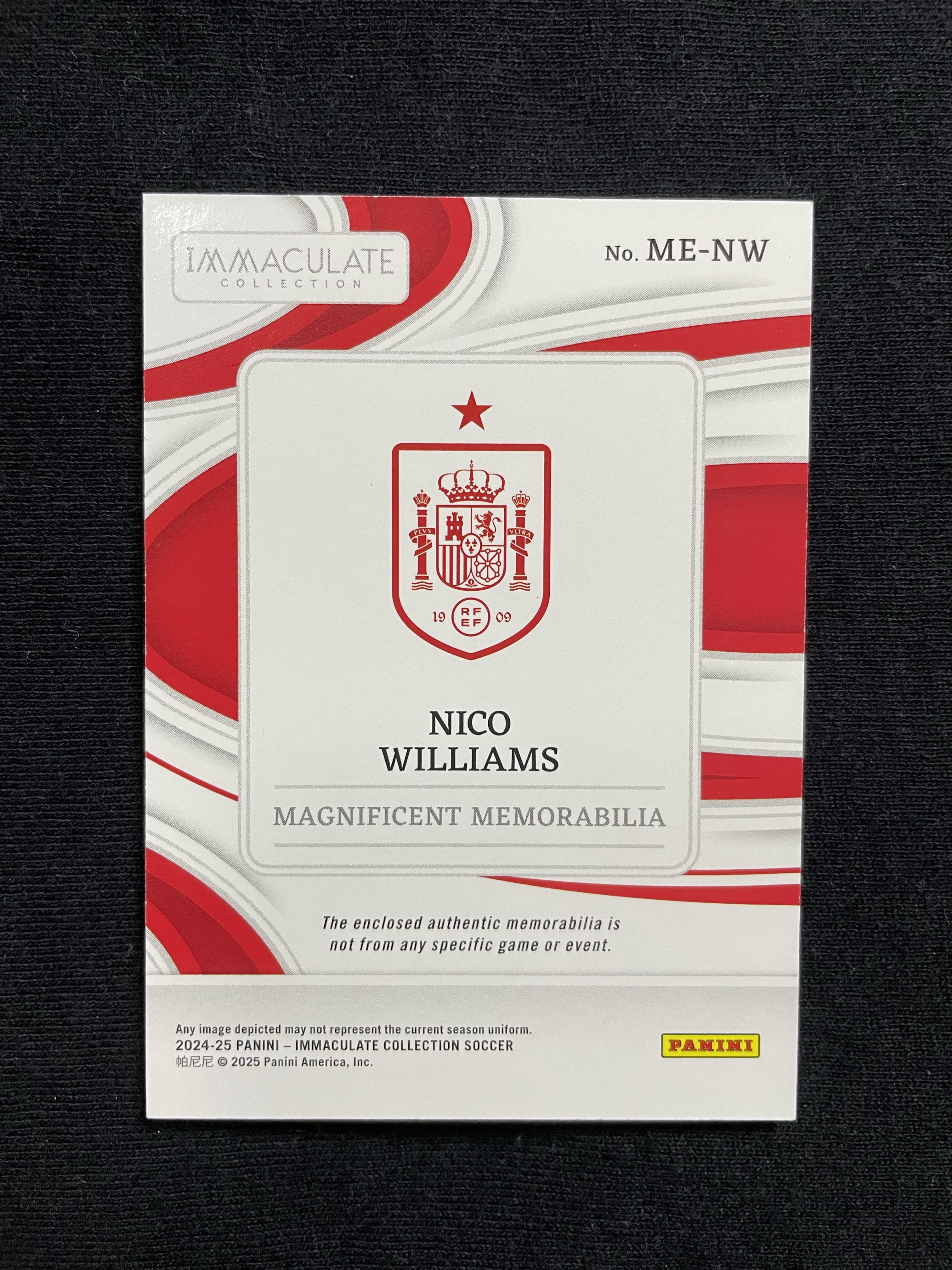 2024-25 Panini Immaculate Nico Williams 【苦茶子拍卖】尼科 威廉姆斯 爱咪咪系列 99编 球衣 物料 铜平行 西班牙 毕尔巴鄂竞技 卡品如图