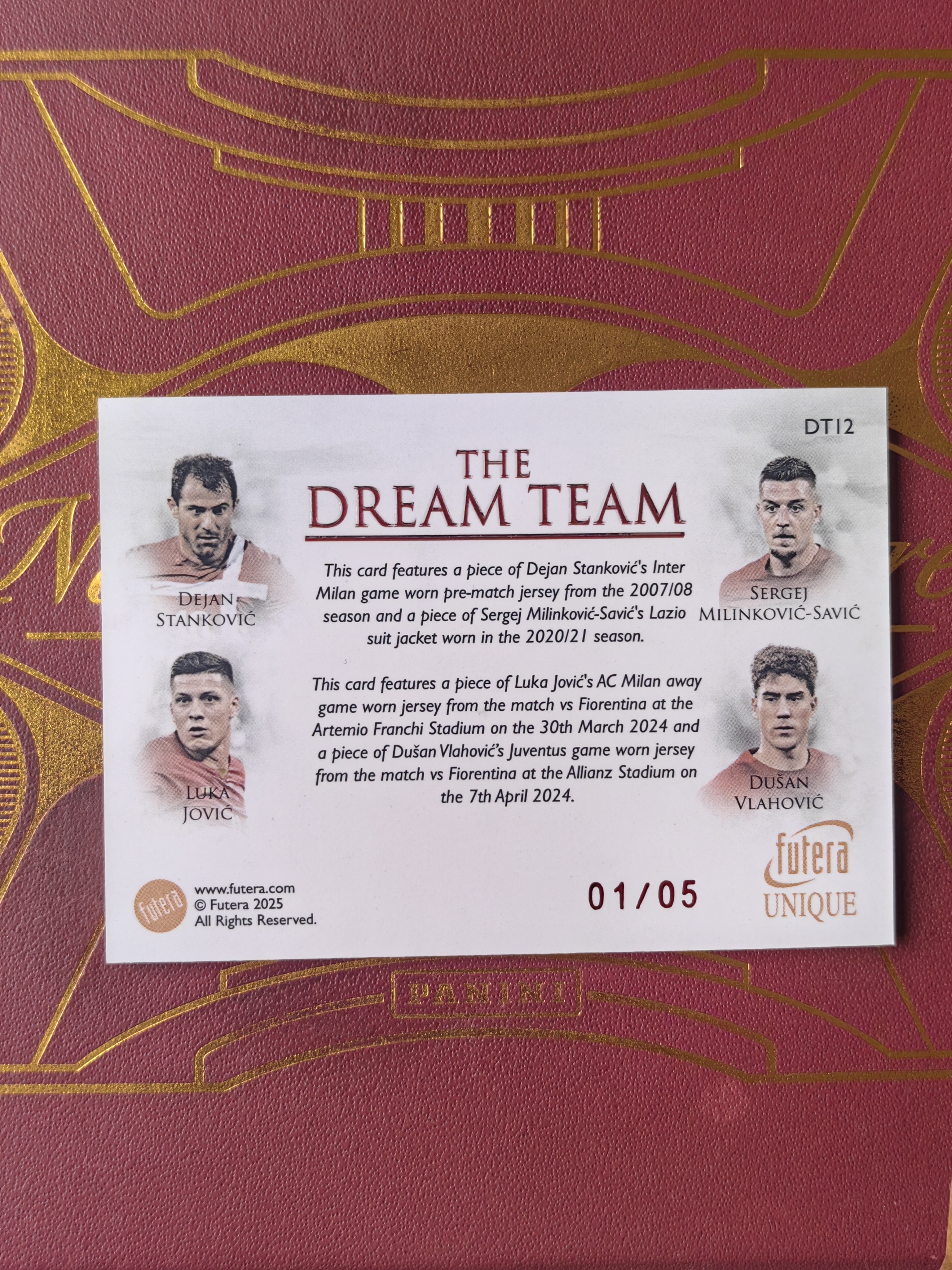 2025 Futera Unique Dušan Vlahović 卡卡星球拍卖 福特拉 塞尔维亚 斯坦科维奇 米林科维奇 卢卡 约维奇 弗拉霍维奇 四人 落场球衣物料 1/5编 首编1/1