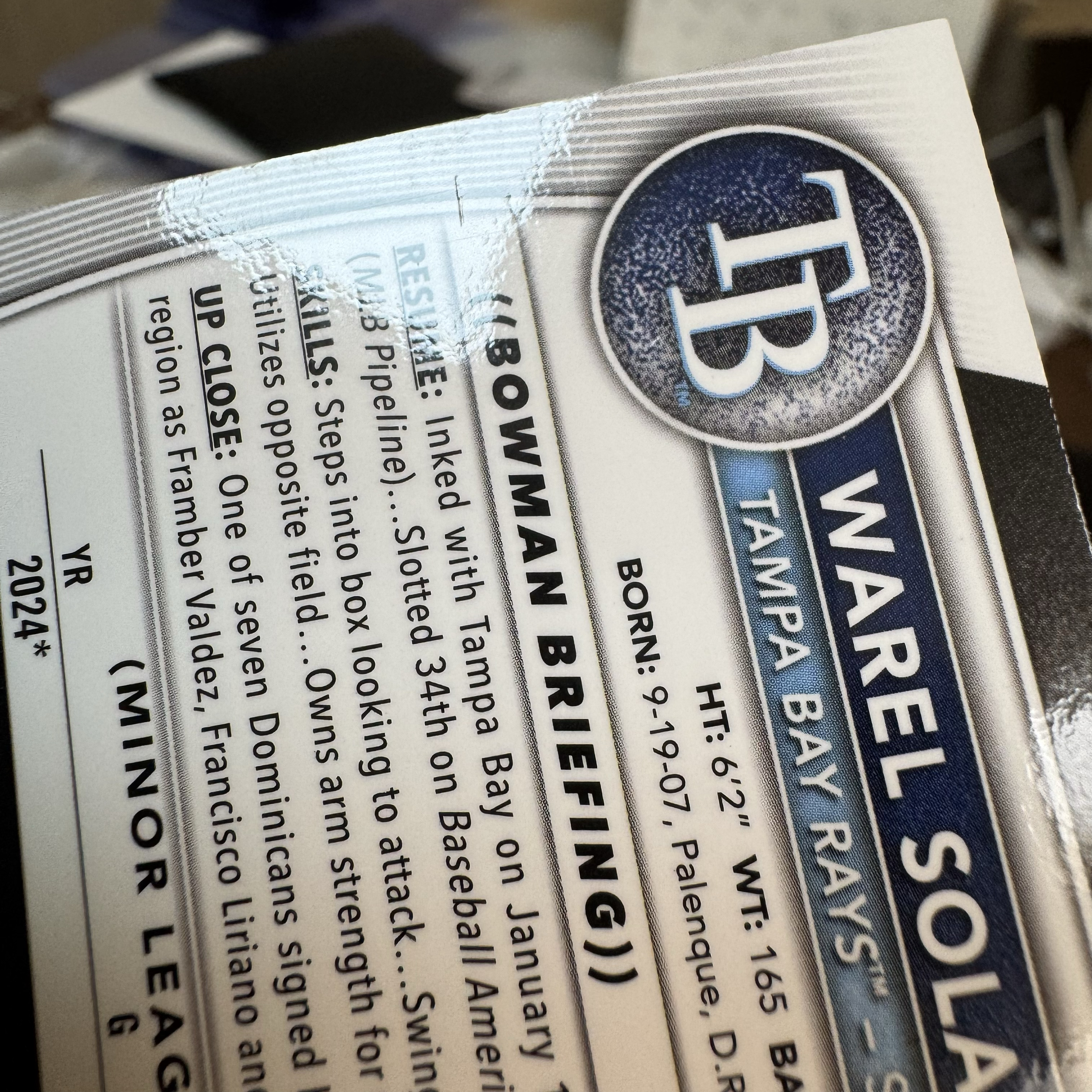 2025 Topps Chrome Warel Solano 【十三笔】Chrome Bowan Warel Solano 光芒队  399编 马赛克折 卡品如图(YY)