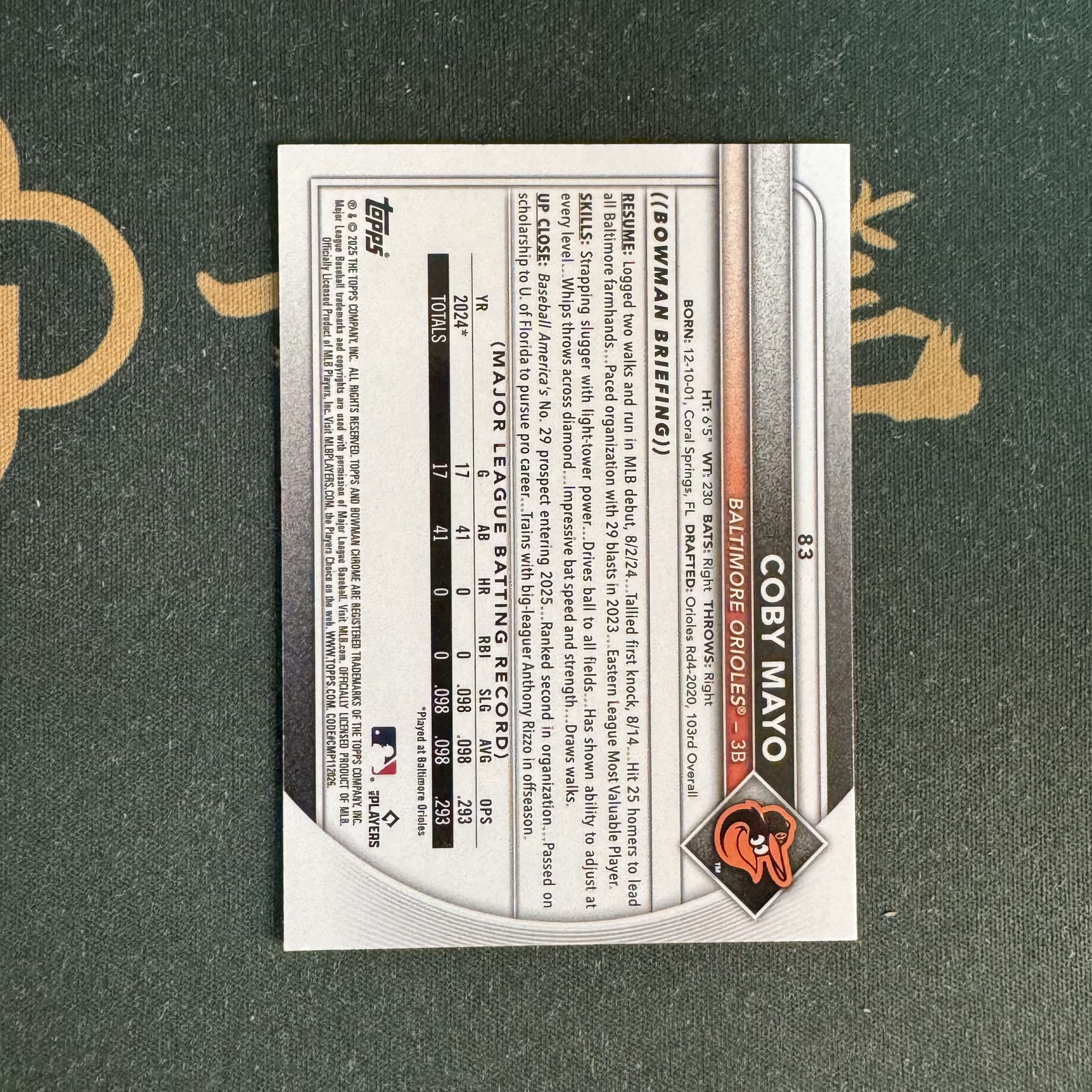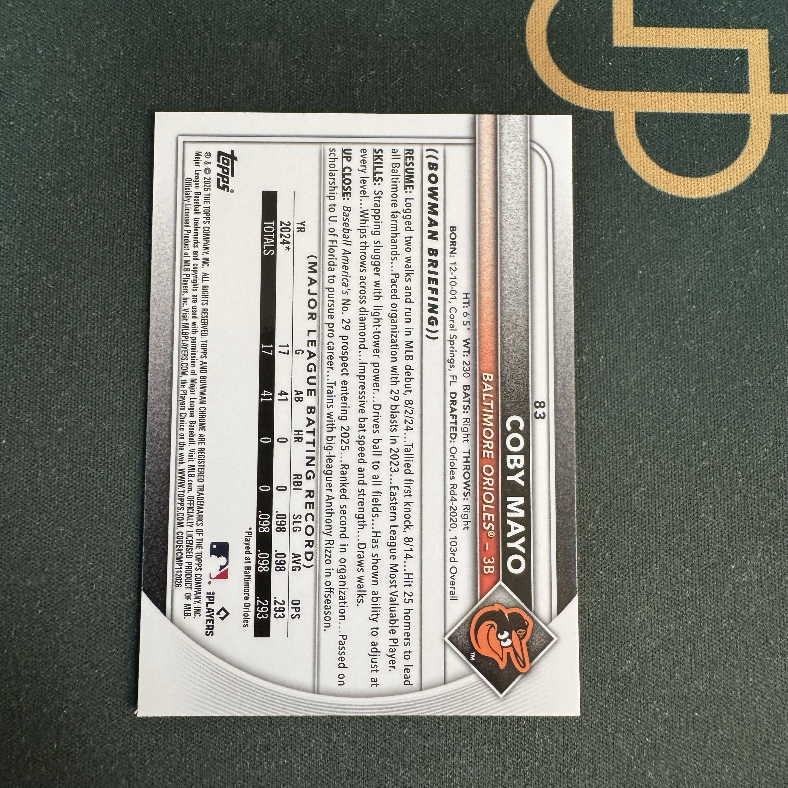 2025 Topps Chrome Coby Mayo RC 【十三笔】Chrome Bowan RC 新秀 科比·梅奥 巴尔的摩金莺队 399编 马赛克折 卡品如图(YY)