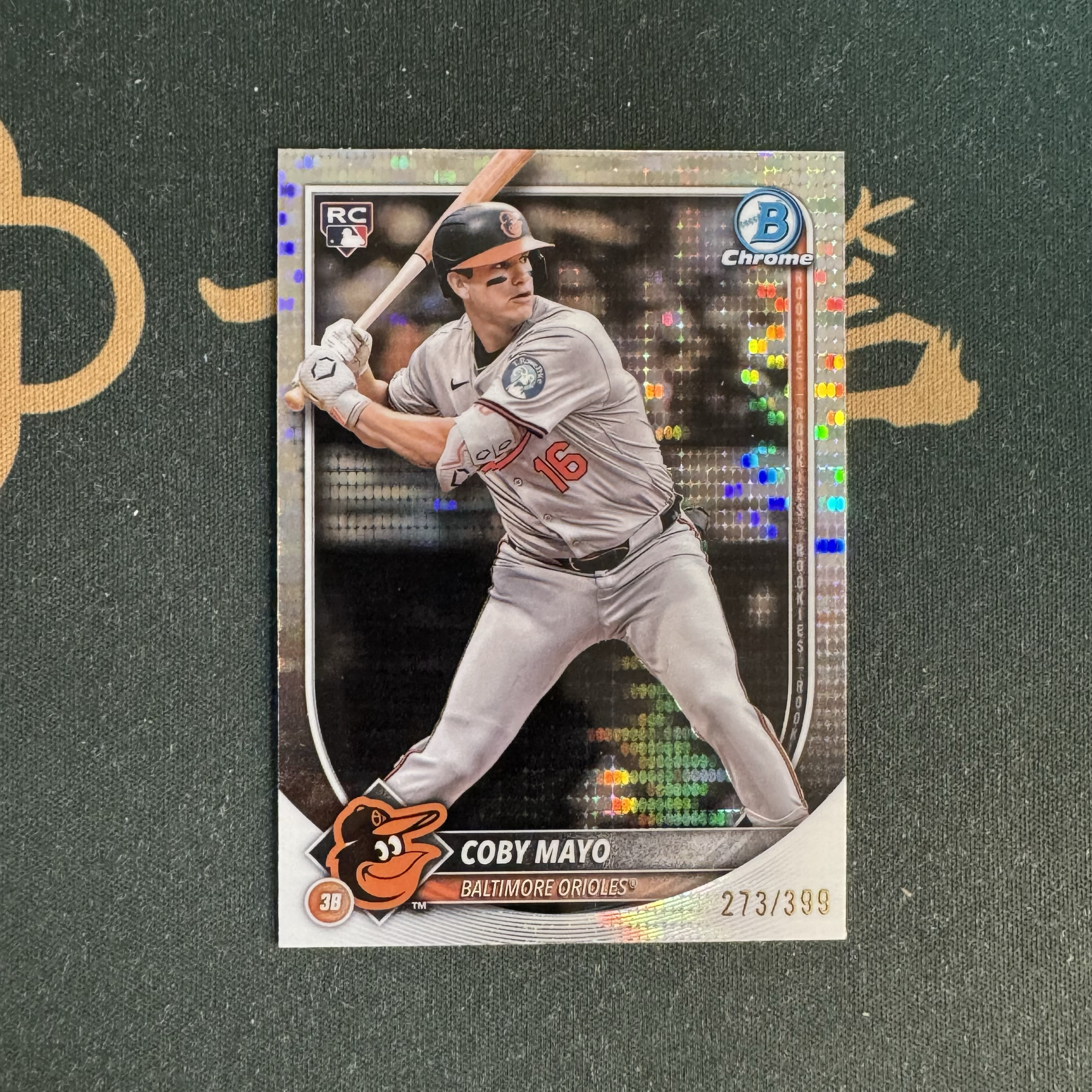 2025 Topps Chrome Coby Mayo RC 【十三笔】Chrome Bowan RC 新秀 科比·梅奥 巴尔的摩金莺队  399编 马赛克折 卡品如图(YY)