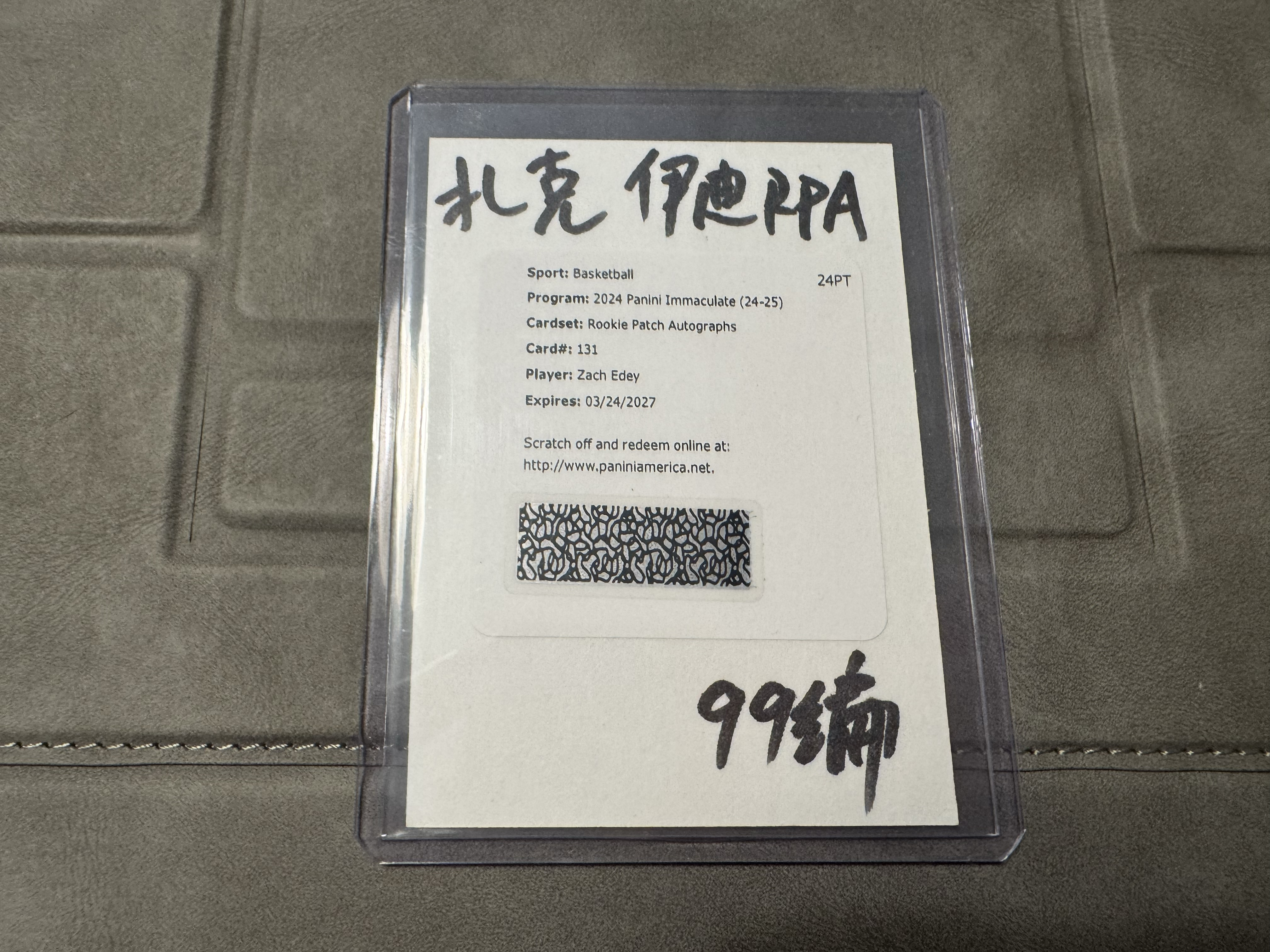 2024-25 Panini immaculate Zach Edey RC 灰熊 扎克 伊迪 新秀 /99编 rpa 签字 卡签 球衣物料patch 交换版交换板不发码