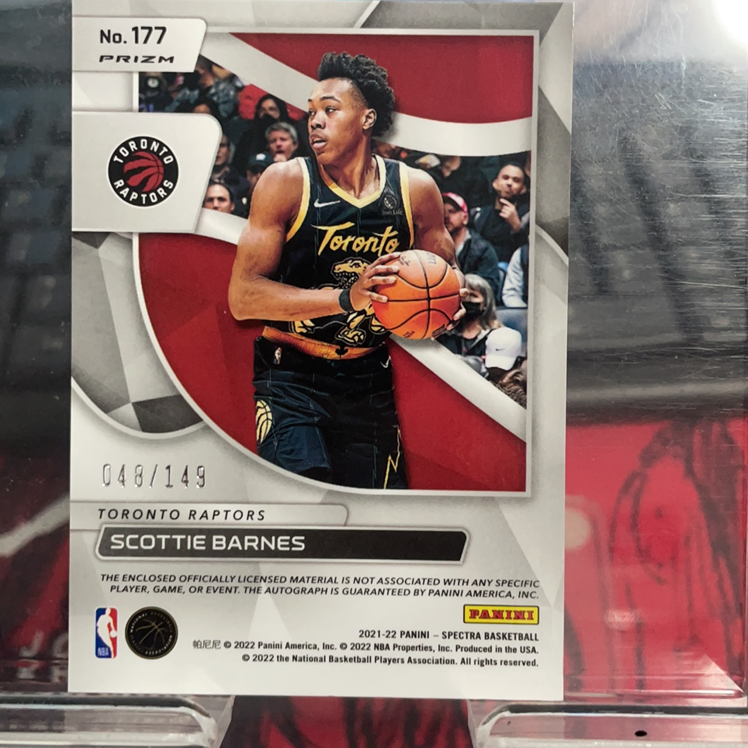 2021-22 Panini Spectra Scottie Barnes RC 猛龙 斯科蒂 巴恩斯 光谱 149编 rpa 卡签 签字 新秀rc 球衣 物料 折射
