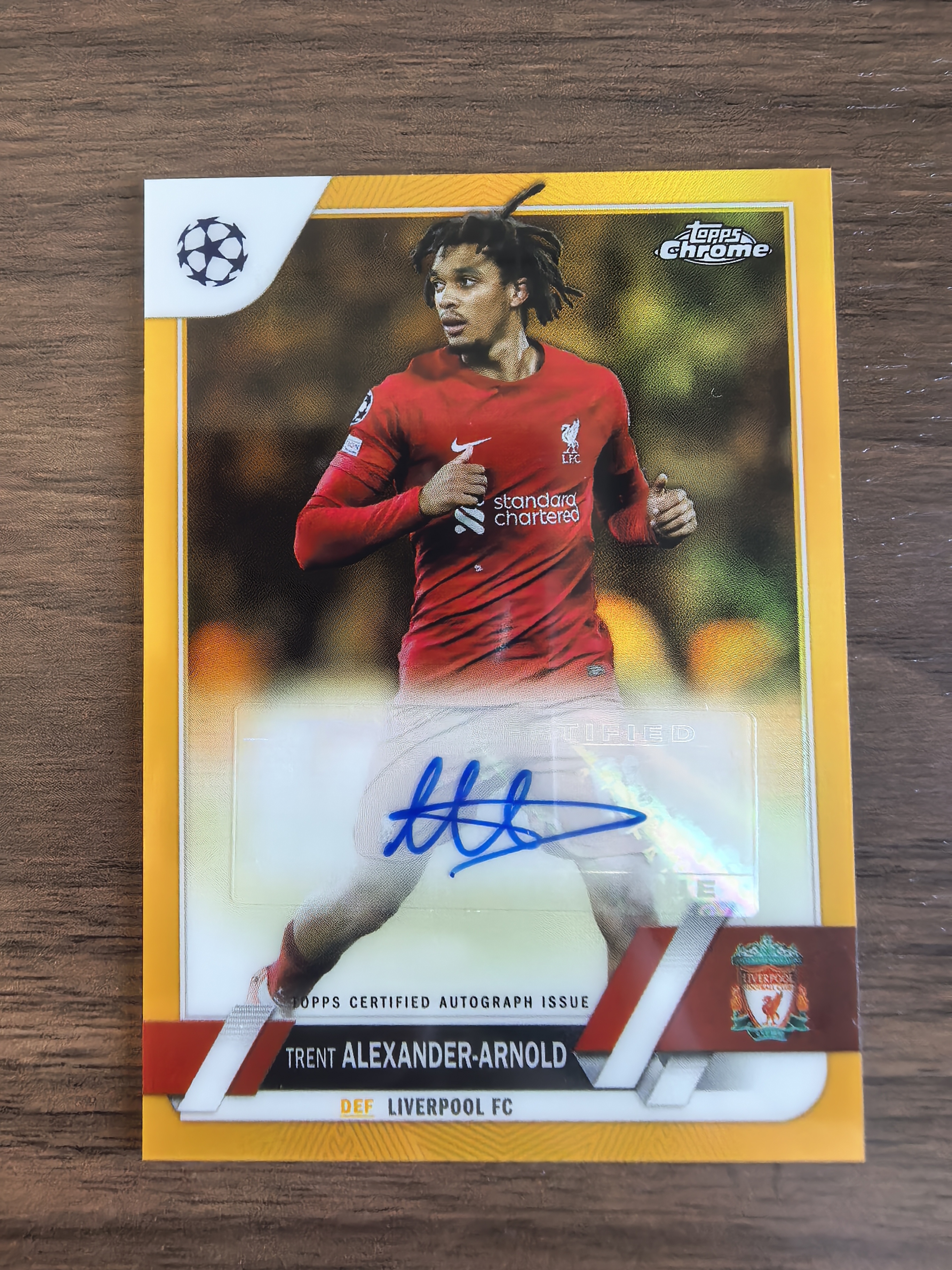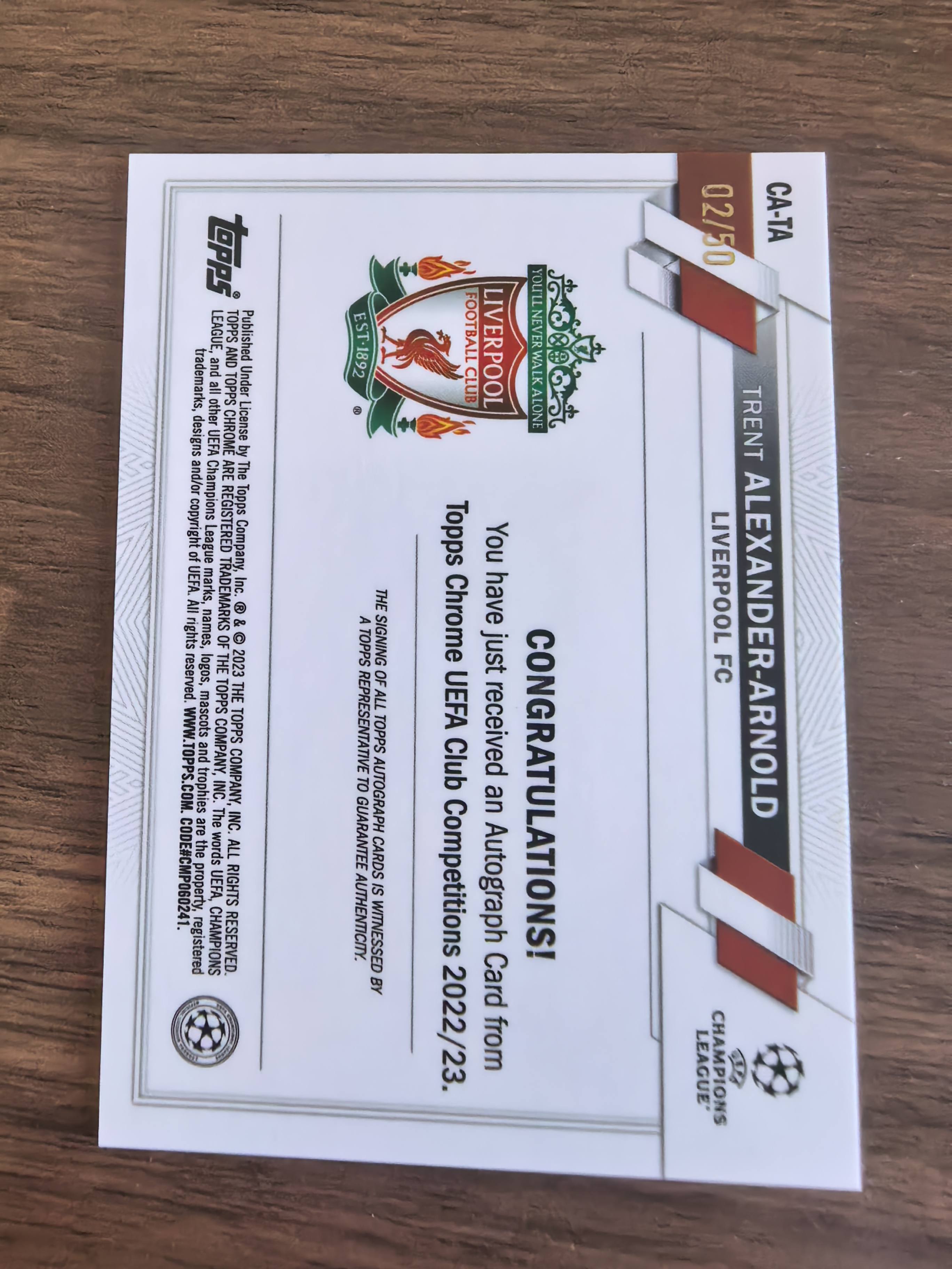 2023 Topps Chrome Trent Alexander Arnold 欧冠 英格兰 利物浦 皇马 亚历山大 阿诺德 金折 签字 02/50编 墨迹湛蓝 卡品如图